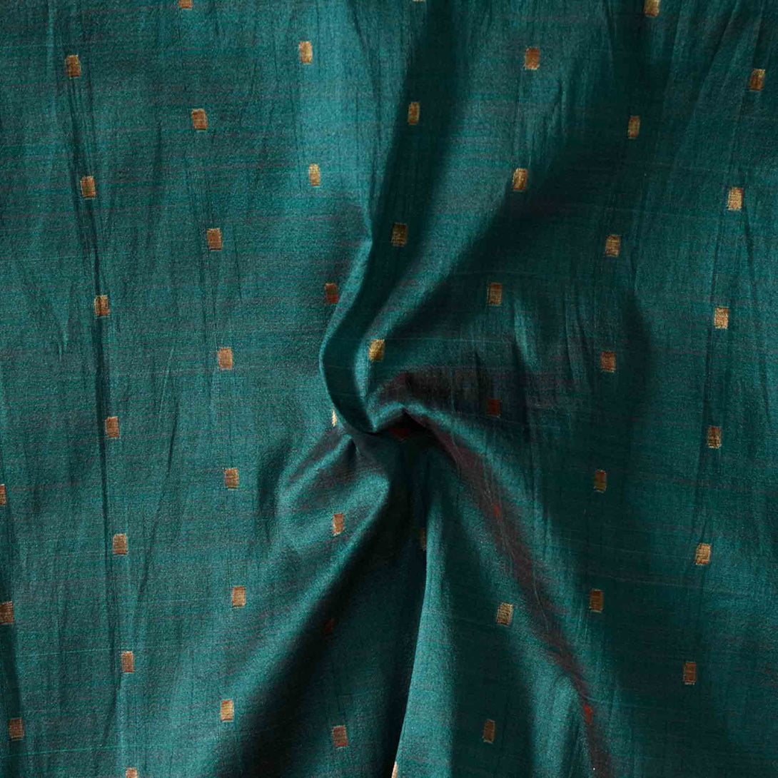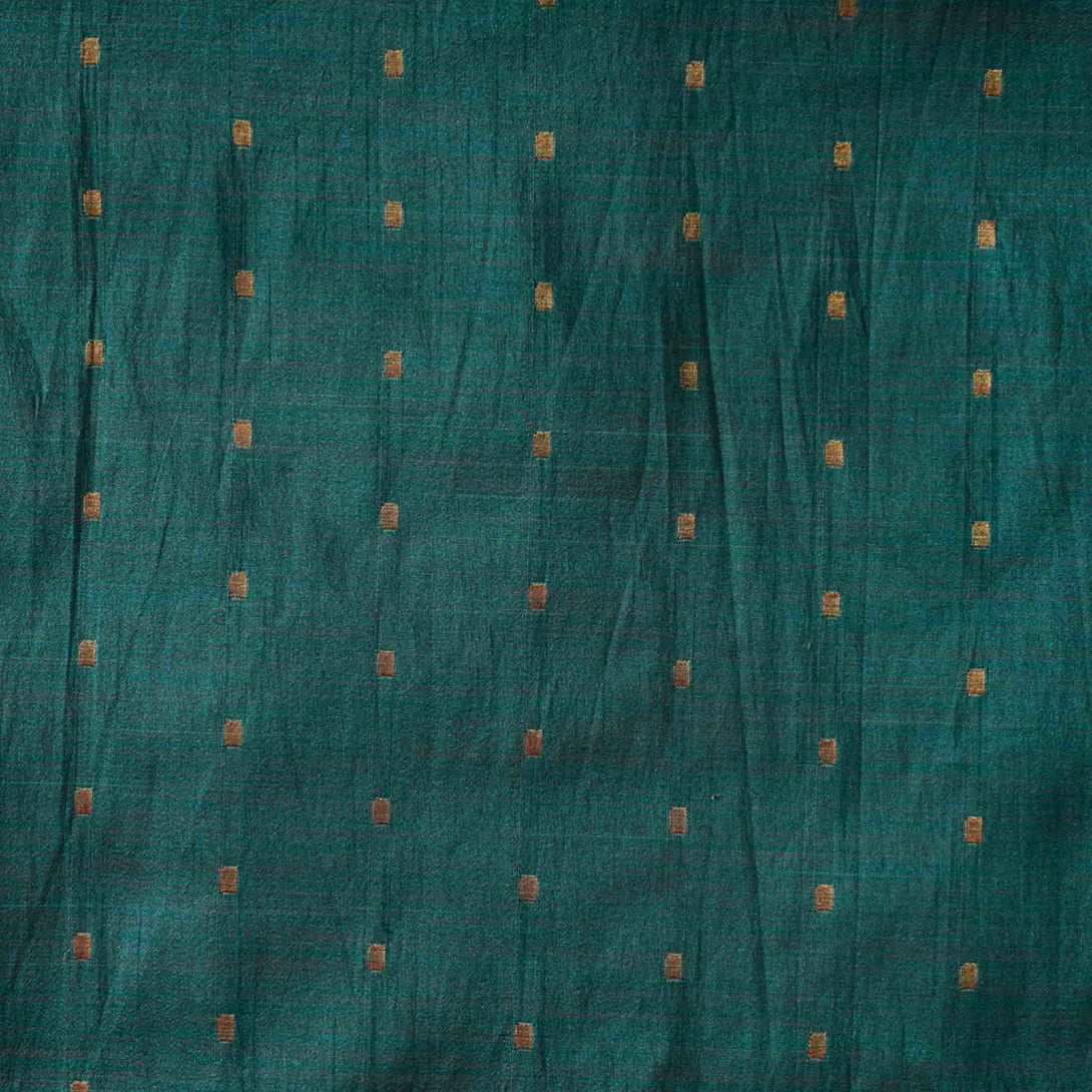 ( Pre-Cut 1.55 Meter ) Chandari Teal Green With Golden Zari Dots Hand Woven Fabric