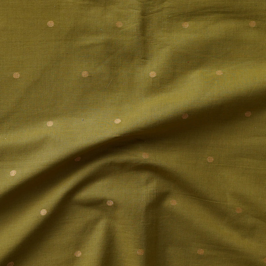 ( PRE-CUT 1.55 METER ) Pure Cotton Handloom Mehandi Green With Golden Zari Butti Woven Fabric
