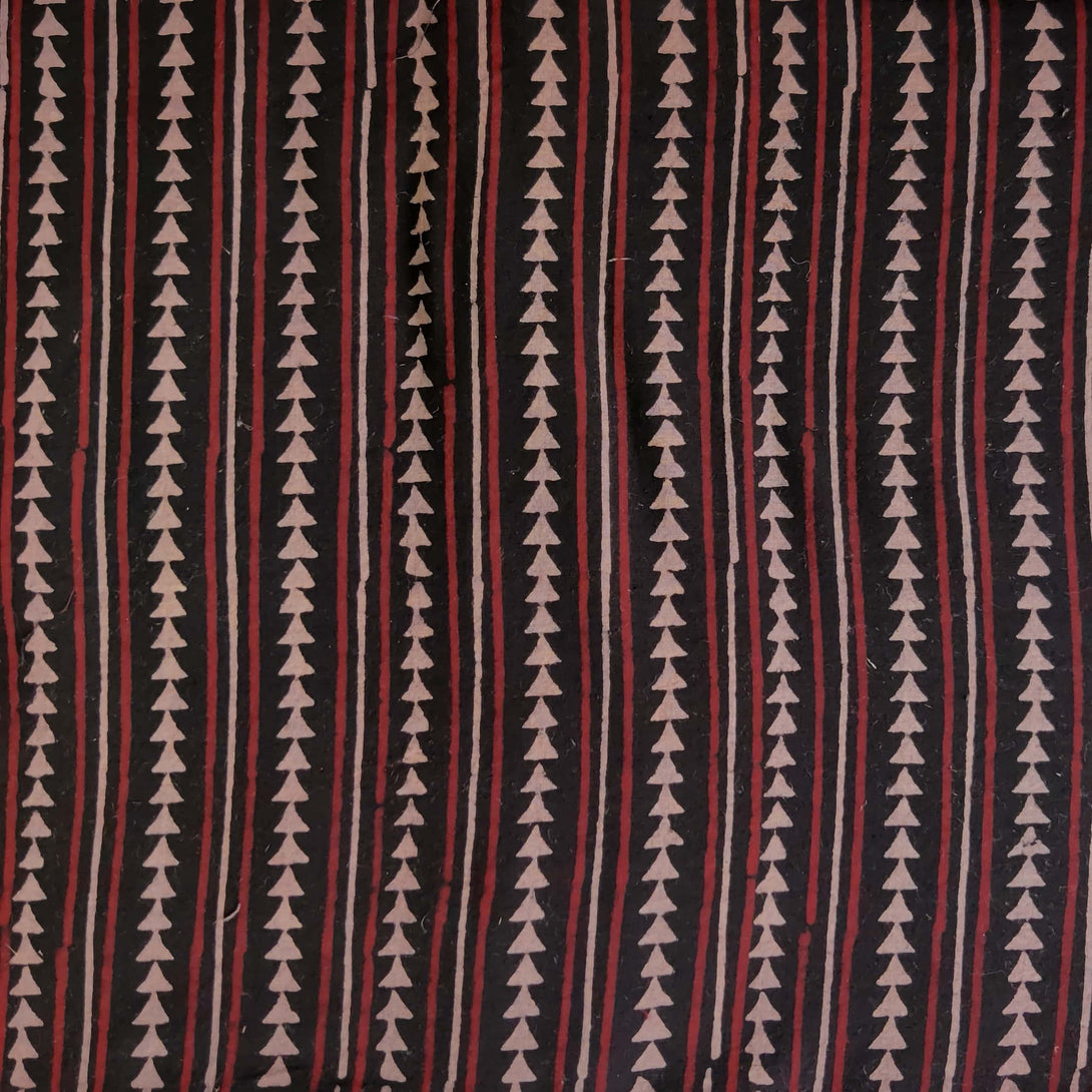 PRE-CUT 1.60 METER Pure Cotton Ajrak Black With Rust Cream Arrow Head And Stripes Border Hand Block Print Fabric