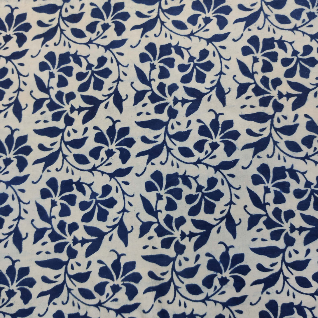 Pre-cut 1.60 meter Pure Cotton Light Indigo With Small Dark Indigo Jaal Hand Block Print Fabric