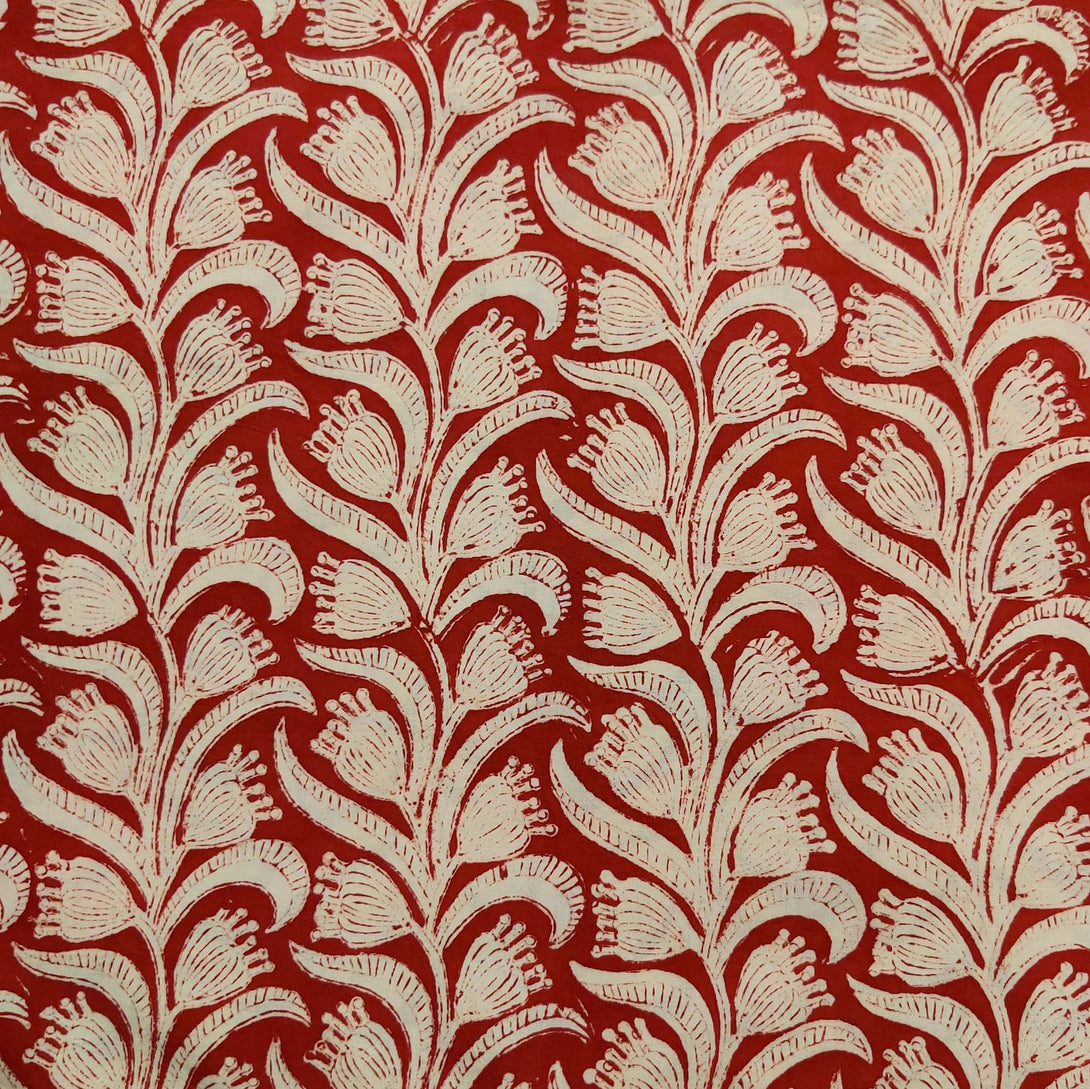 Pre-cut( 1.65 meter )Pure Cotton Bagru Madder With Creeper Hand Block Print Fabric