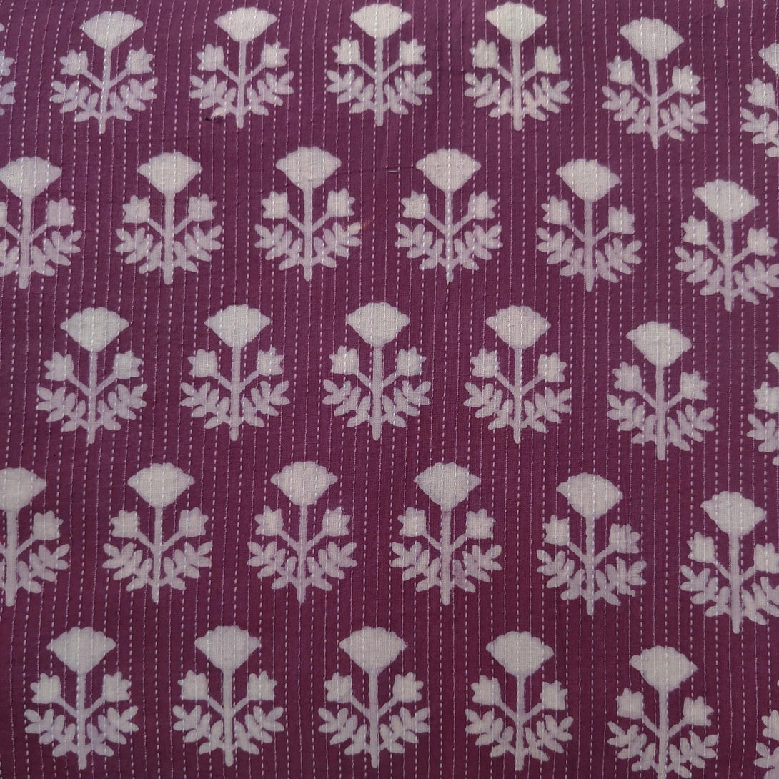 Pre-cut ( 1.65 meter )Pure Cotton Kaatha Mauve Purple With Cream Flower Hand Block Print Fabric