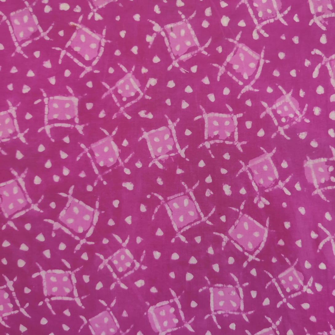 Pre-cut ( 1.70 meter )Pure Cotton Dabu Pink With Square Motif Hand Block Print Fabric