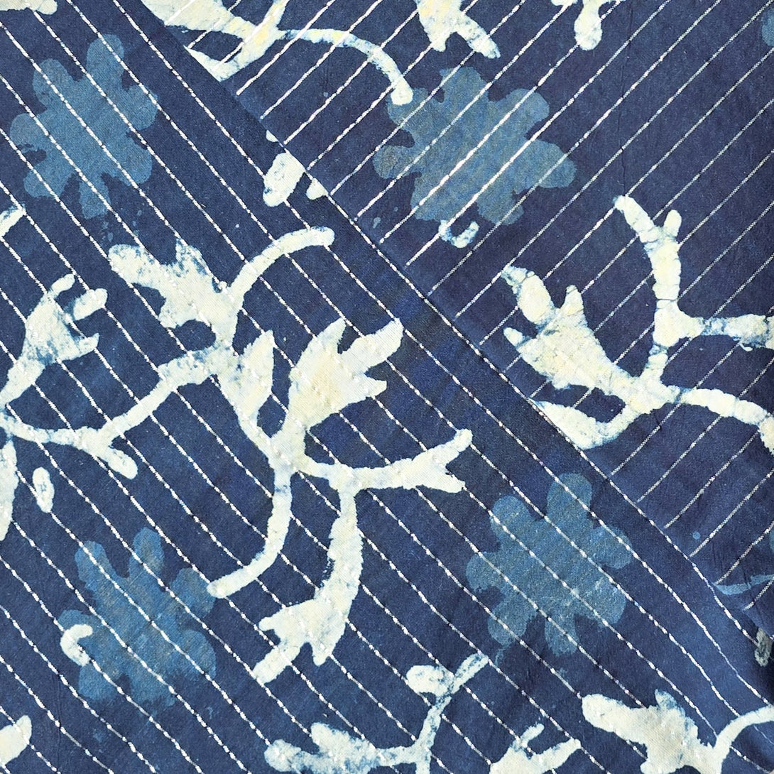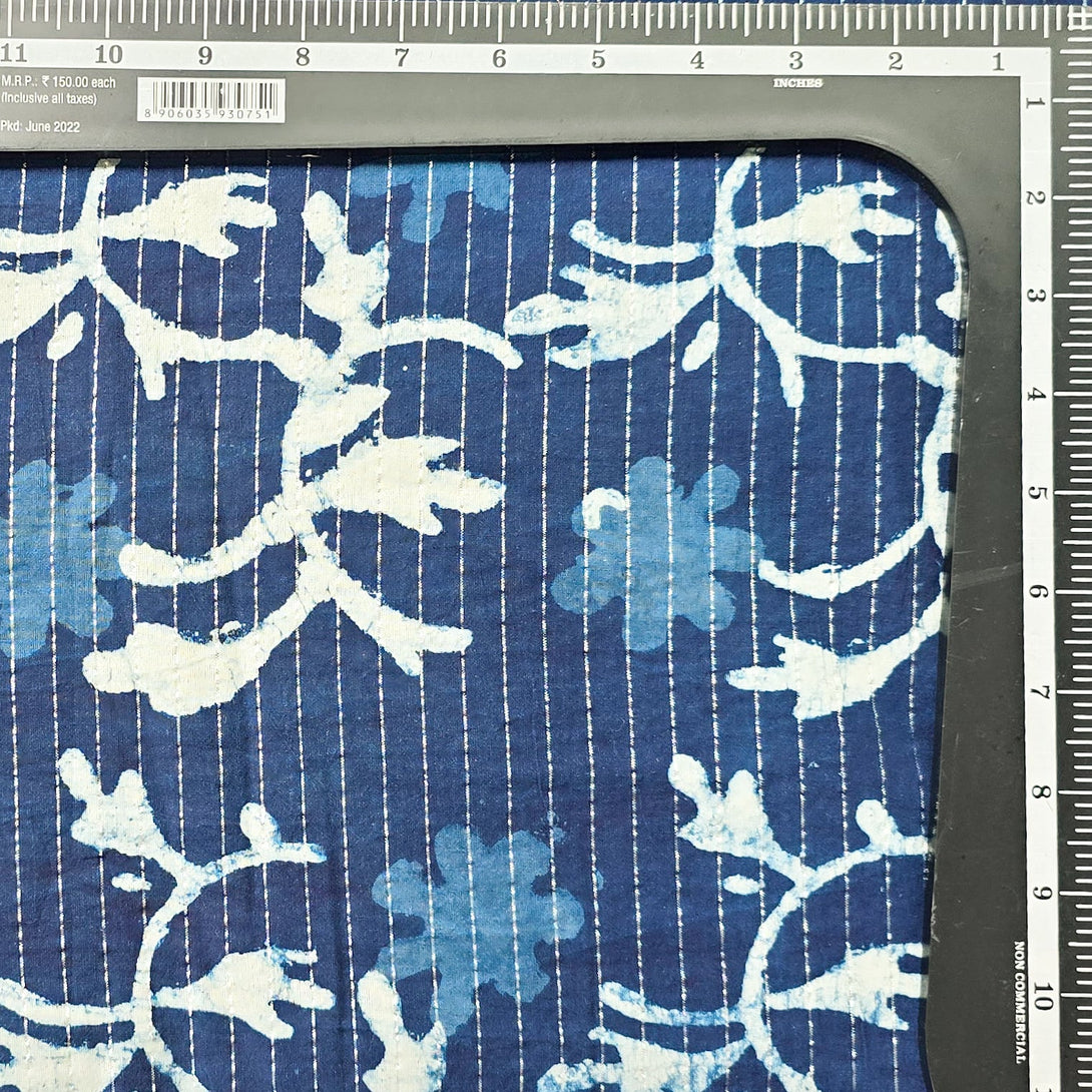 ( Pre-Cut 1.70 Meter ) Pure Cotton Indigo Lurex Flower Jaal Hand Block Print Fabric