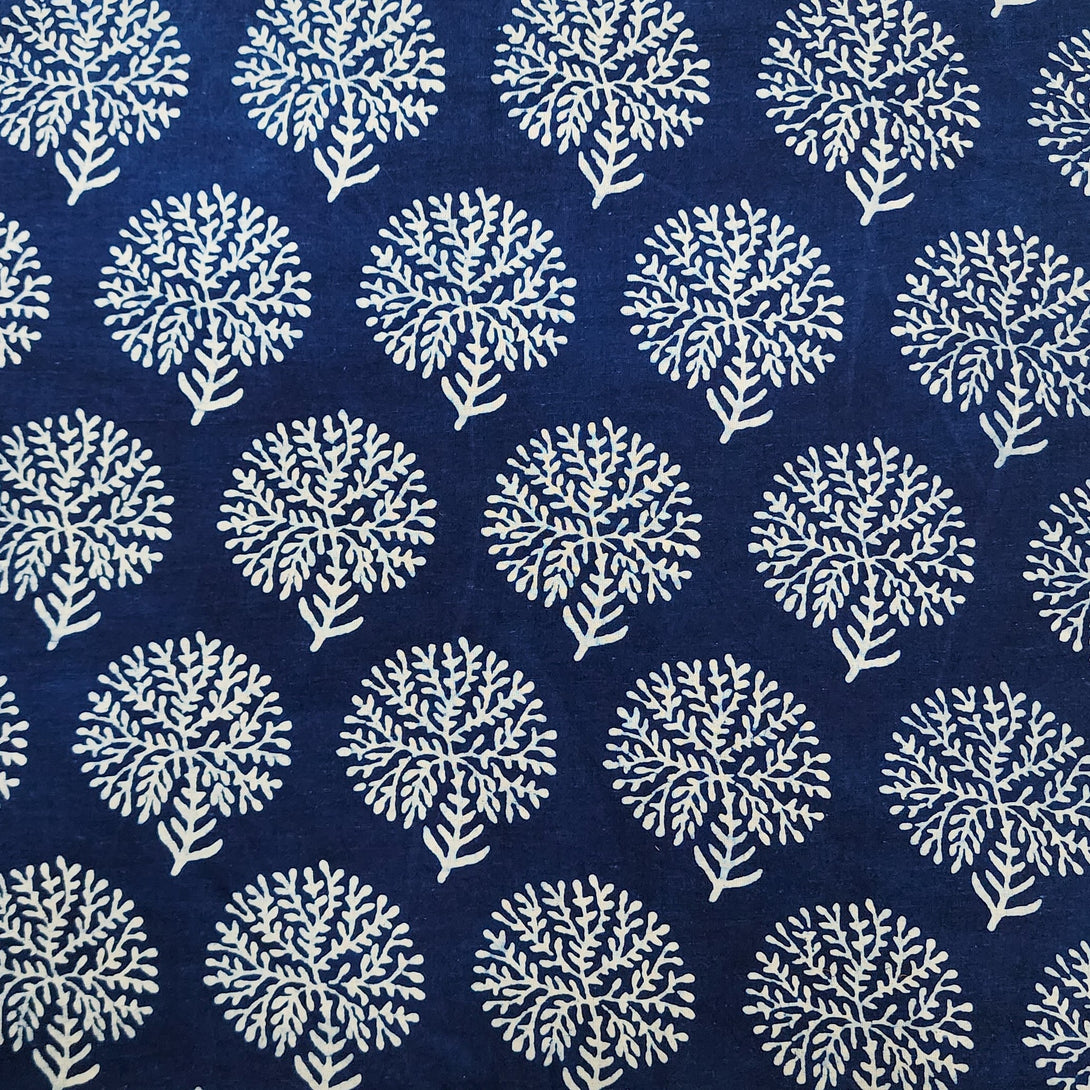 Pre-cut 1.70 meter Pure Cotton Indigo Tree Motif Hand Block Print Fabric