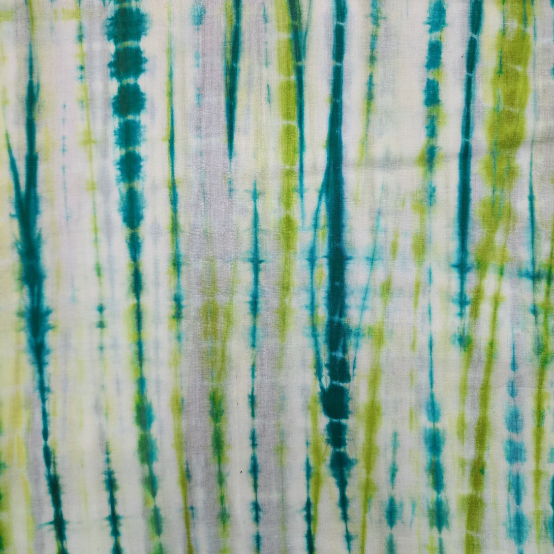 PRE-CUT 1.70 METER Pure Cotton Shibori Green Teal Tie And Dye Hand Made Fabric