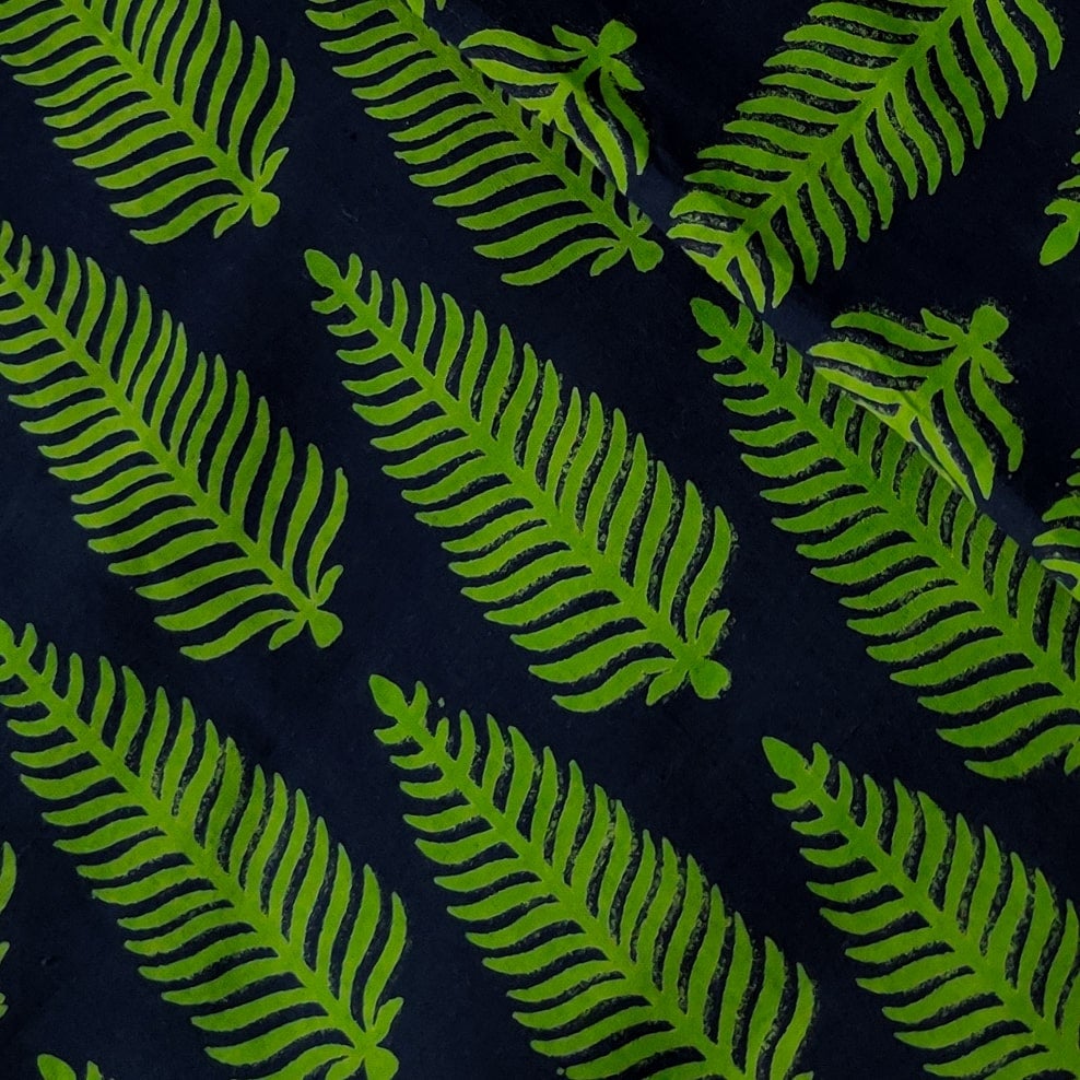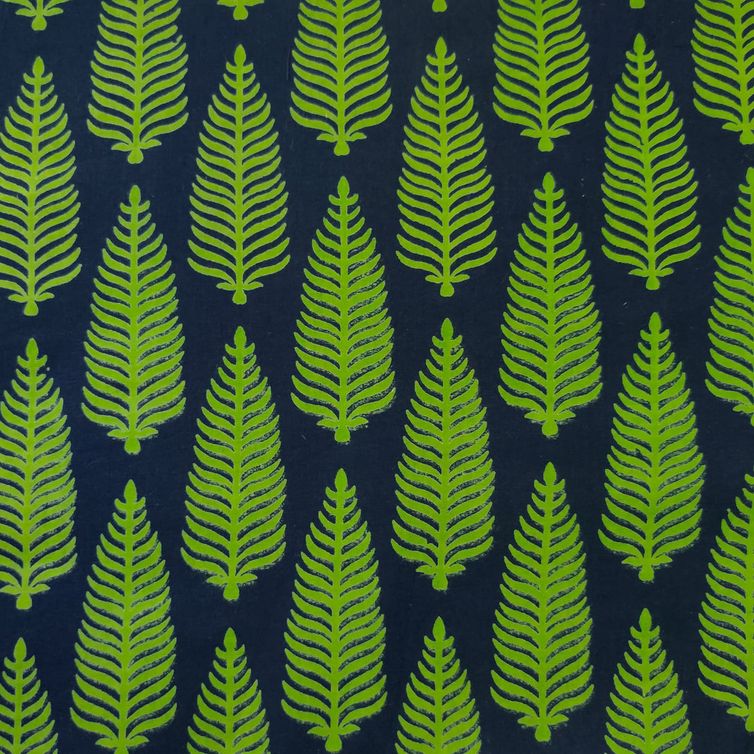 Pre-cut ( 1.70 meter)Pure Cotton Discharge Dabu Teal With Green Fern Hand Block Print Fabric