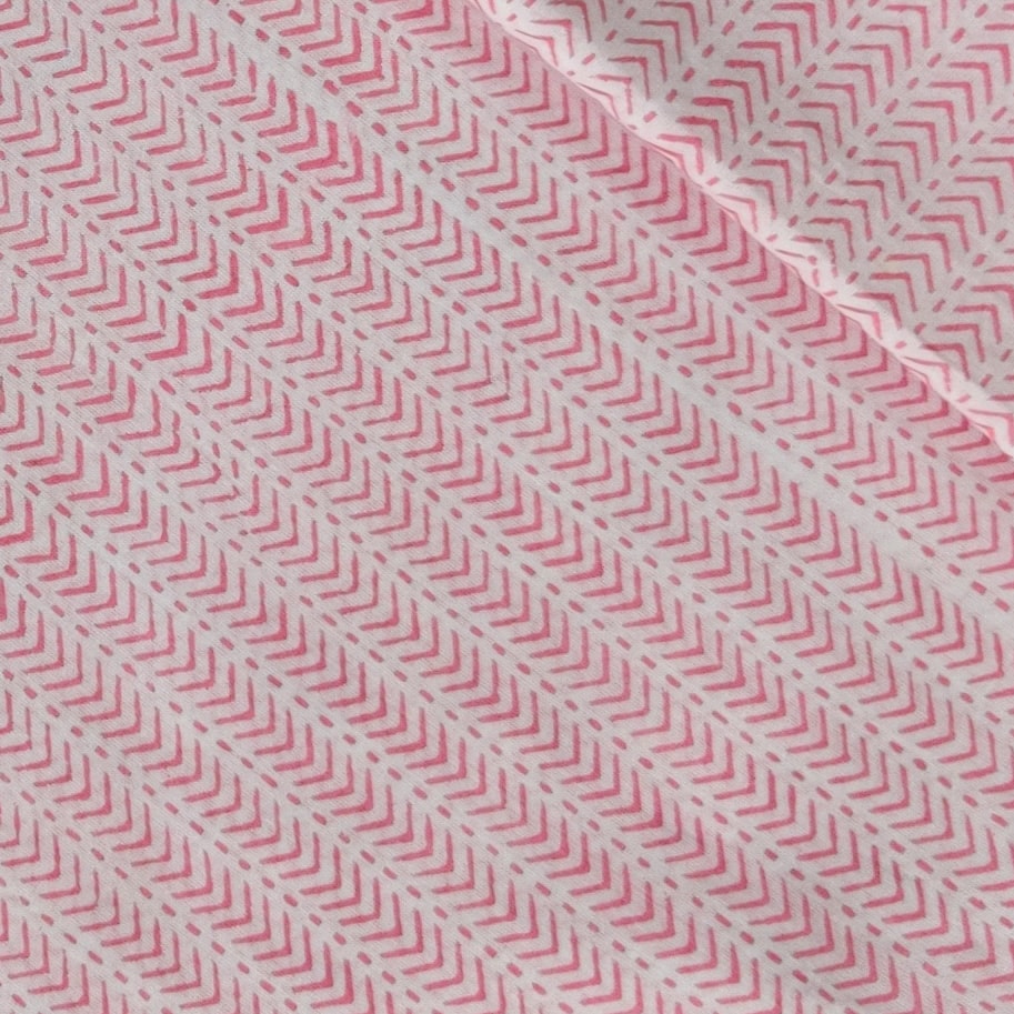 Pre-Cut 1.70 Meters Pure Cotton Jaipuri White With Light Pink V Stripes Hand Block Print Fabric