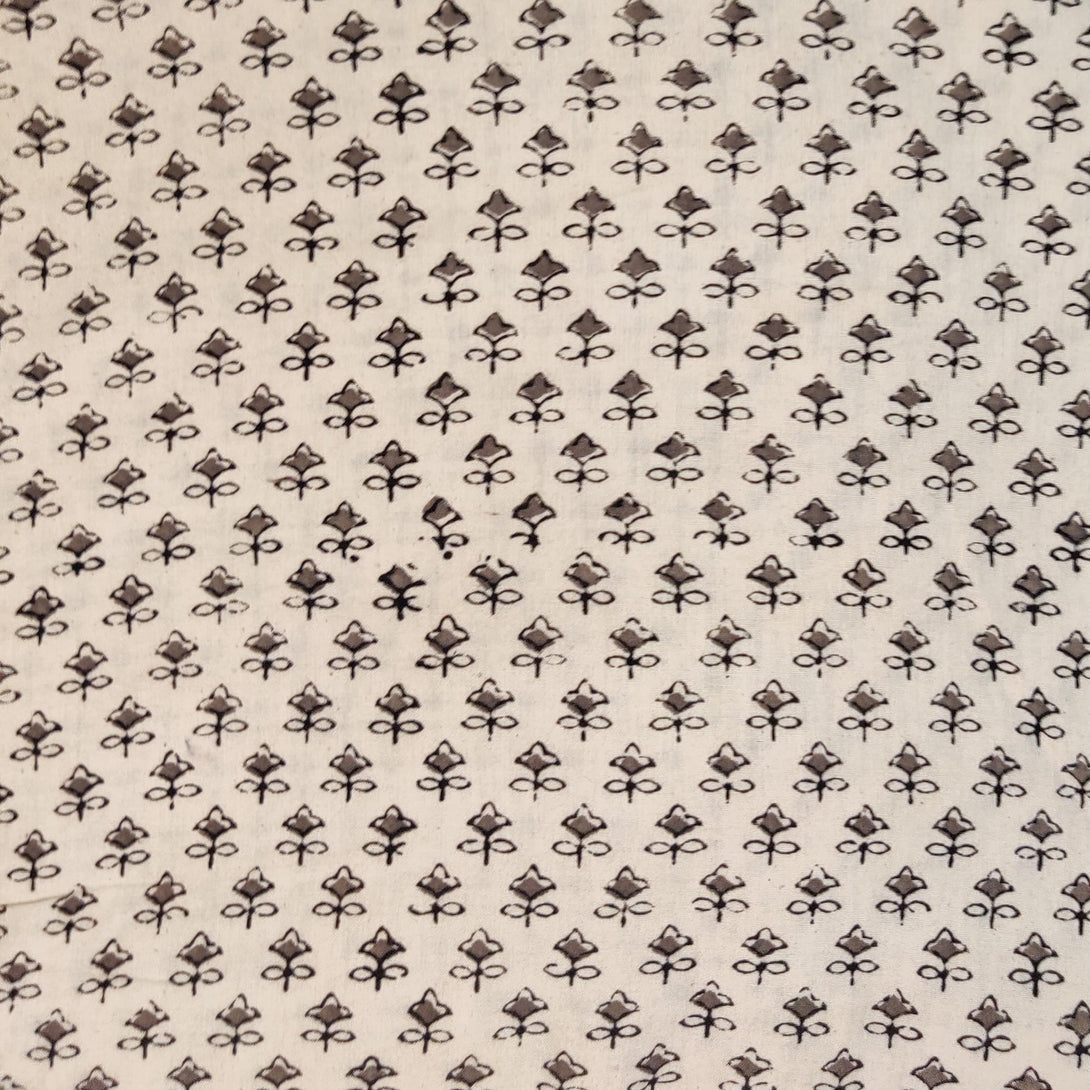 Pre-cut 1.75 meter Pure Cotton Cream Ajrak With Tiny Motifs Hand Block Print Fabric