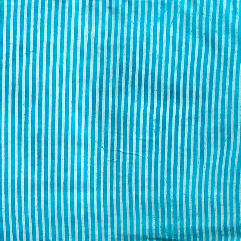 ( PRE-CUT 1.75 METER ) Pure Cotton Dabu Blue With White Stripes Hand Block Print Fabric