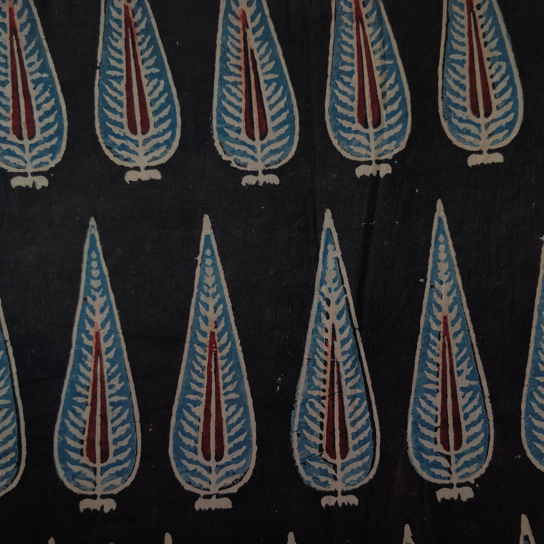Pre-Cut 1.80 Meter Pure Cotton Ajrak Black With Blue Cypress Hand Block Print Fabric