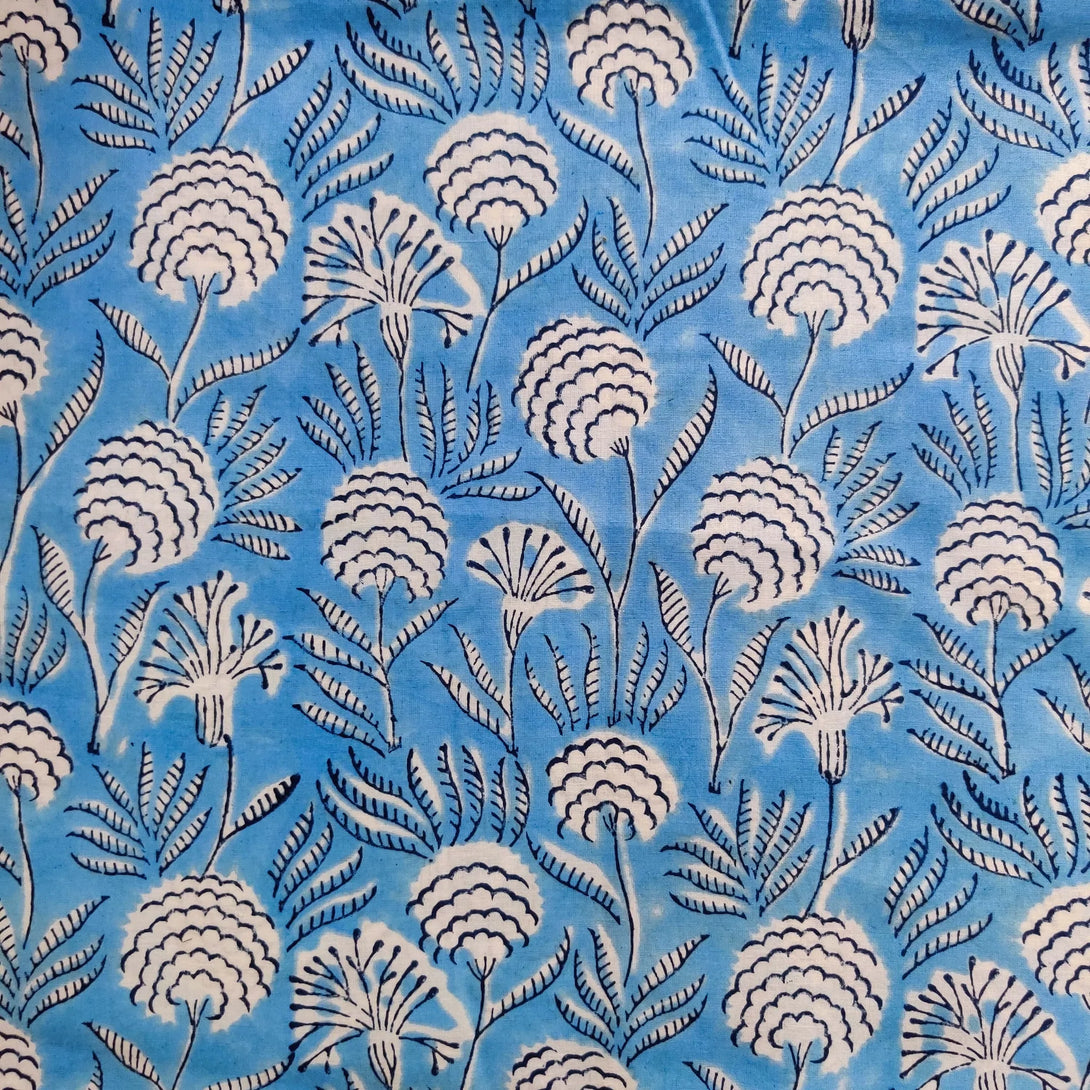 Pre-cut ( 1.75 meter )Pure Cotton Jaipuri Blue With Flower Bud Garden Hand Block Print Fabric