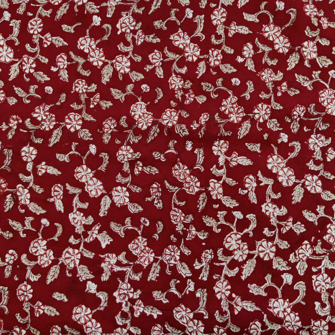 Pre-cut (1.80 meter )Pure Cotton Jaipuri Dark Red With Tiny Red Flowers Jaal Hand Block Print Fabric