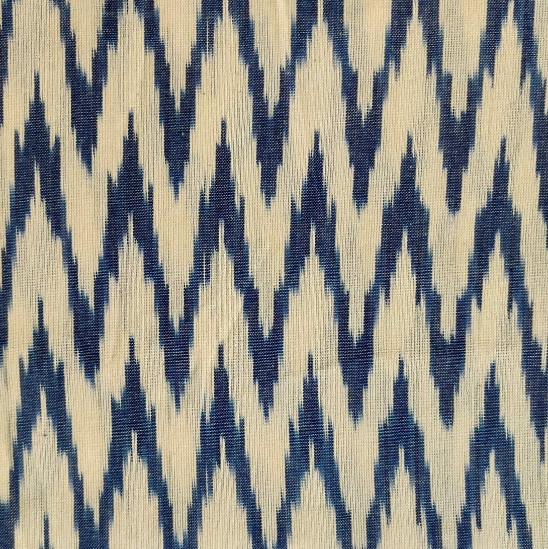 Pre-Cut 1.80 Meters Pure Cotton Cream Ikkat With Blue Zig Zag Weave Woven Fabric