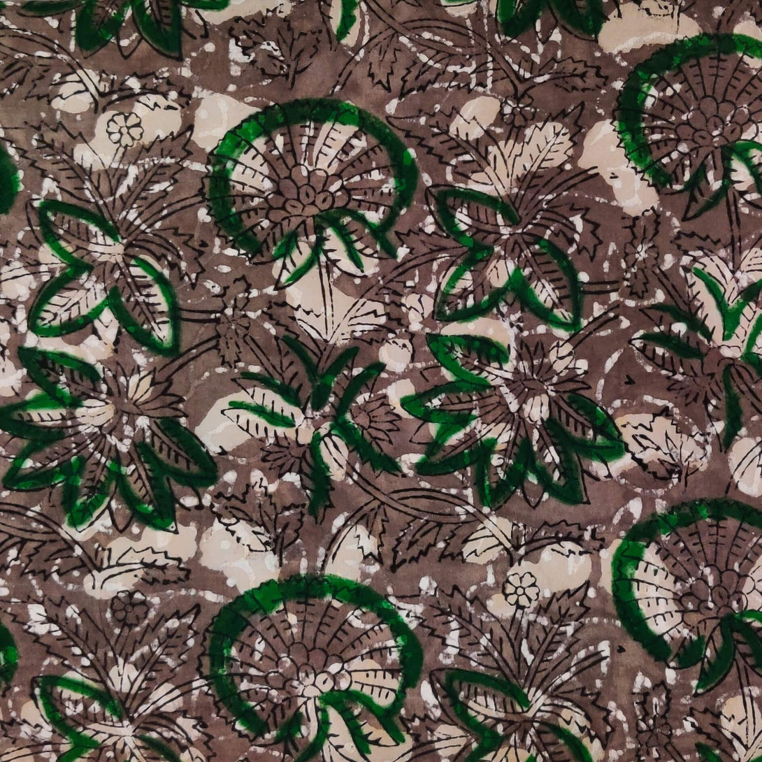 Pre-Cut 1.90 Pure Cotton Kashish With Wild Flower Jaal Hand Block Print Fabric