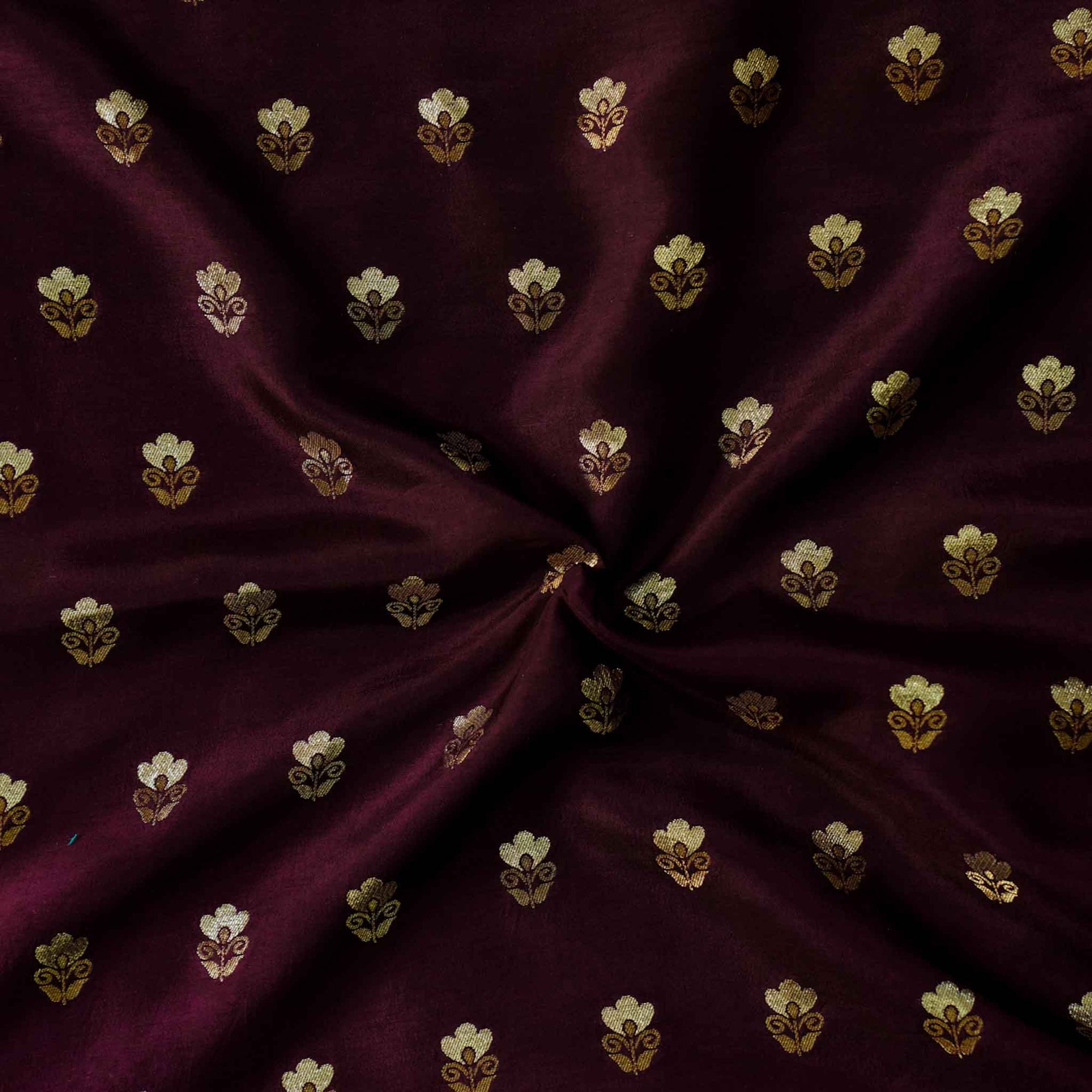( Pre-Cut 1 Meter ) Brocade Maroon Burgundy With Small Flowers Motifs Woven Fabric