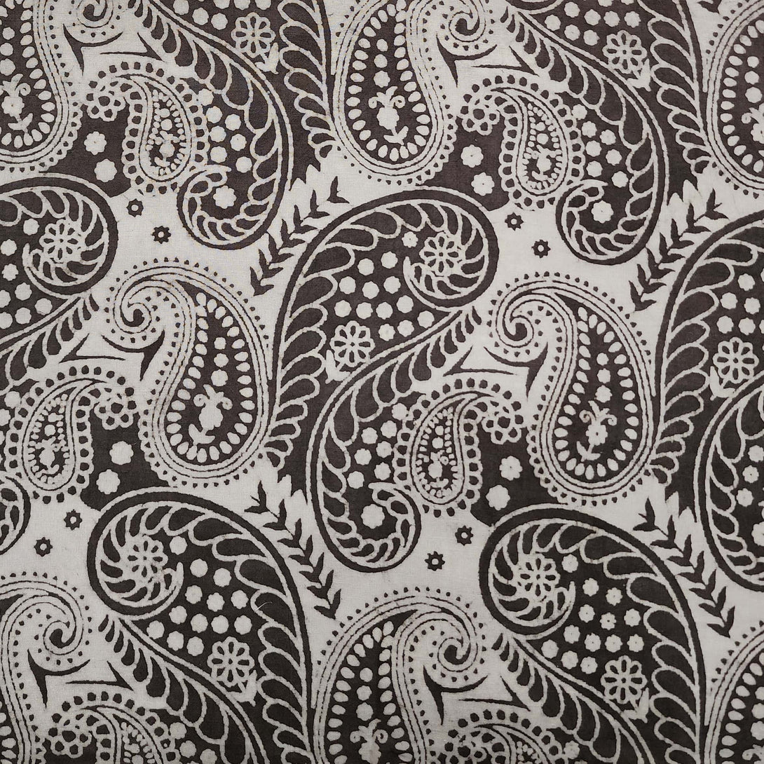 (PRE-CUT 1 METER) Pure Cotton Dabu Grey With White Mahindi Design Hand Block Print Fabric