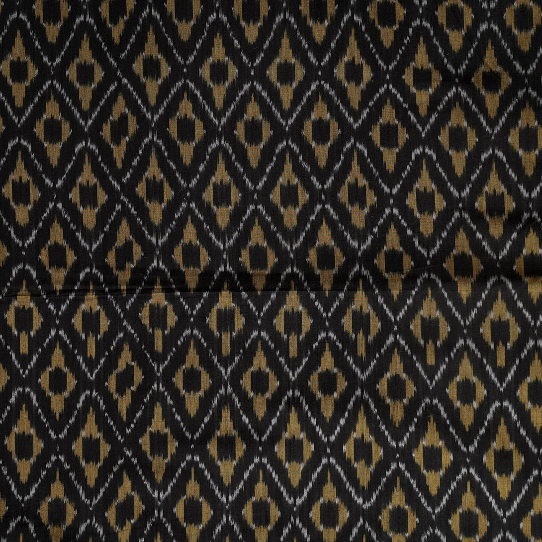 (Pre-cut 1 meter)Pure Cotton Mercerised Ikkat Black With mustard Honeycomb Weaves Woven Fabric