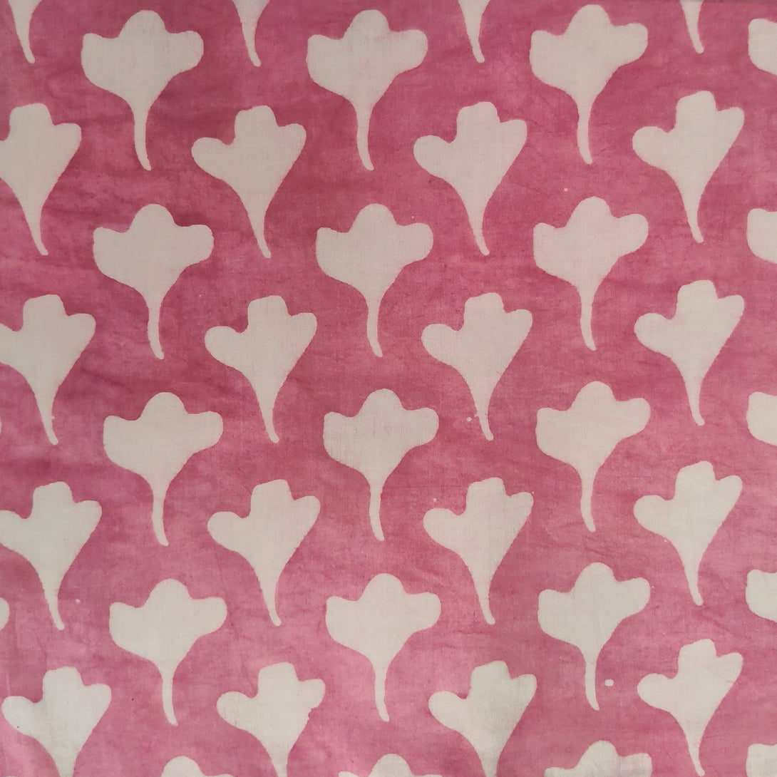 Pre-Cut 1.40 Meter Pure Cotton Dabu Baby Pink With Flower Shadow Hand Block Print Fabric
