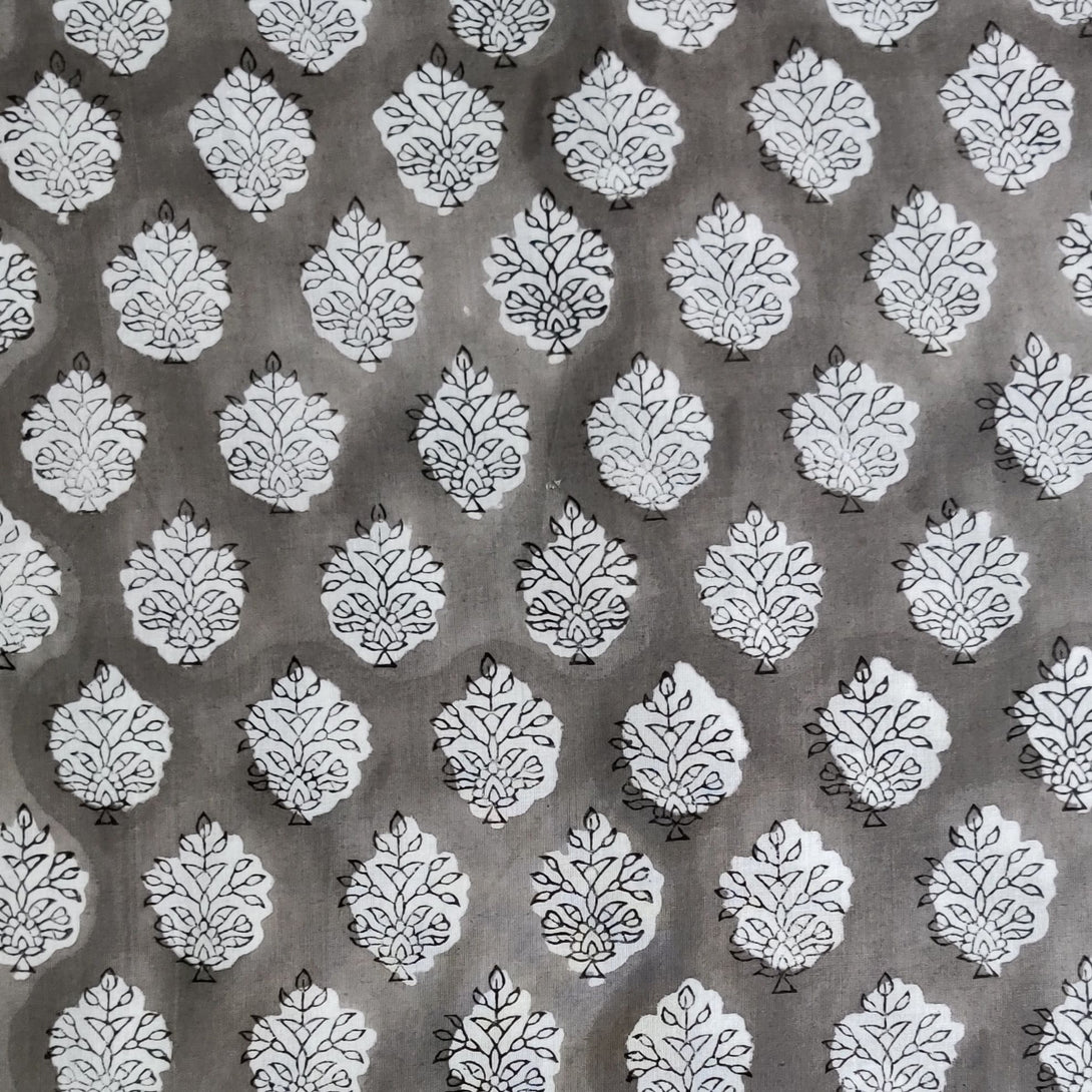 Pre-cut ( 2.10 Meter ) Pure Cotton Jaipuri Grey With Simple Motifs Hnd Block Print Fabric