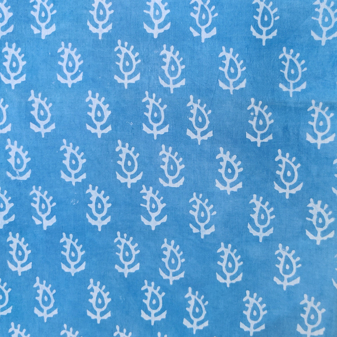 Pre-Cut 2.10 Meters Pure Cotton Special Akola Blue With Kairi Motif Hand Block Print Fabric