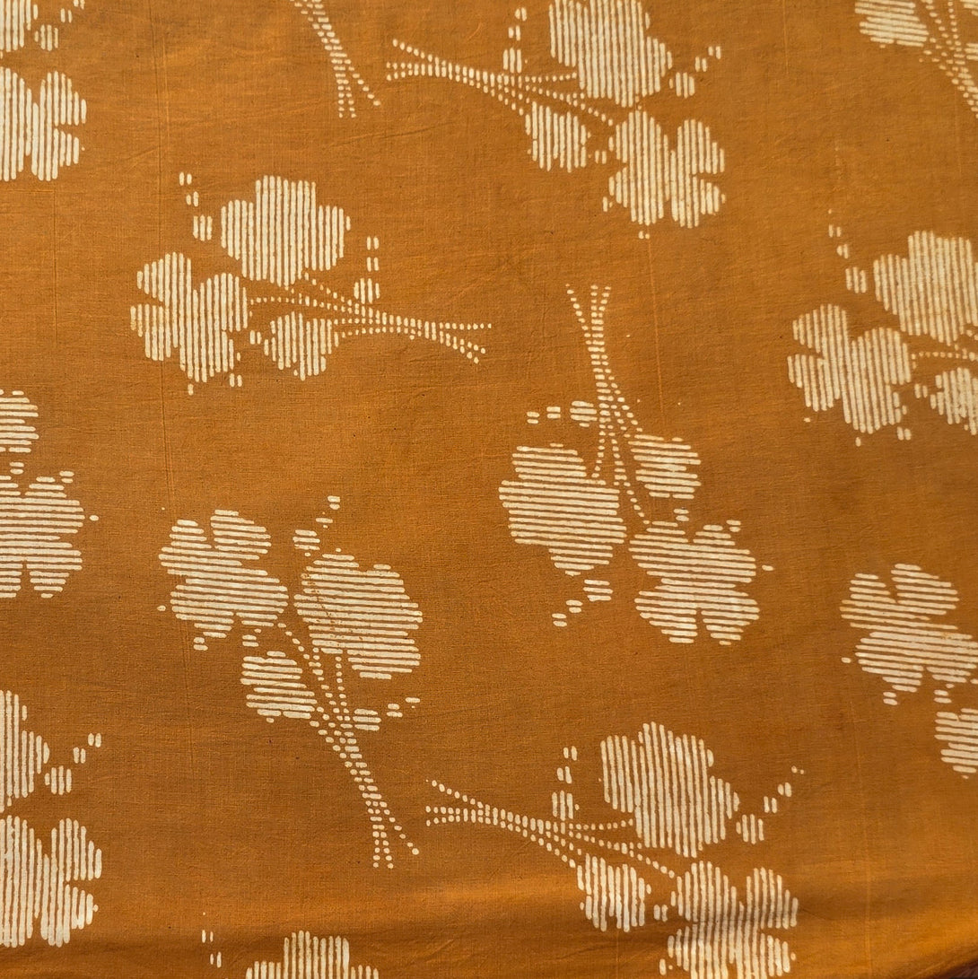 (PRE-CUT 2.15 METER) Pure Cotton Dabu mustard orange With White Plant Motif Hand Block Print Fabric