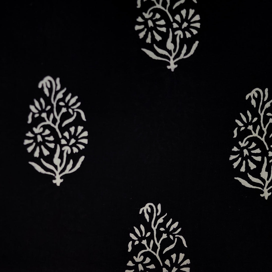 Pre Cut 2.20 meter Pure Cotton Black With Floral Mughal Motifs Hand Block Print Fabric