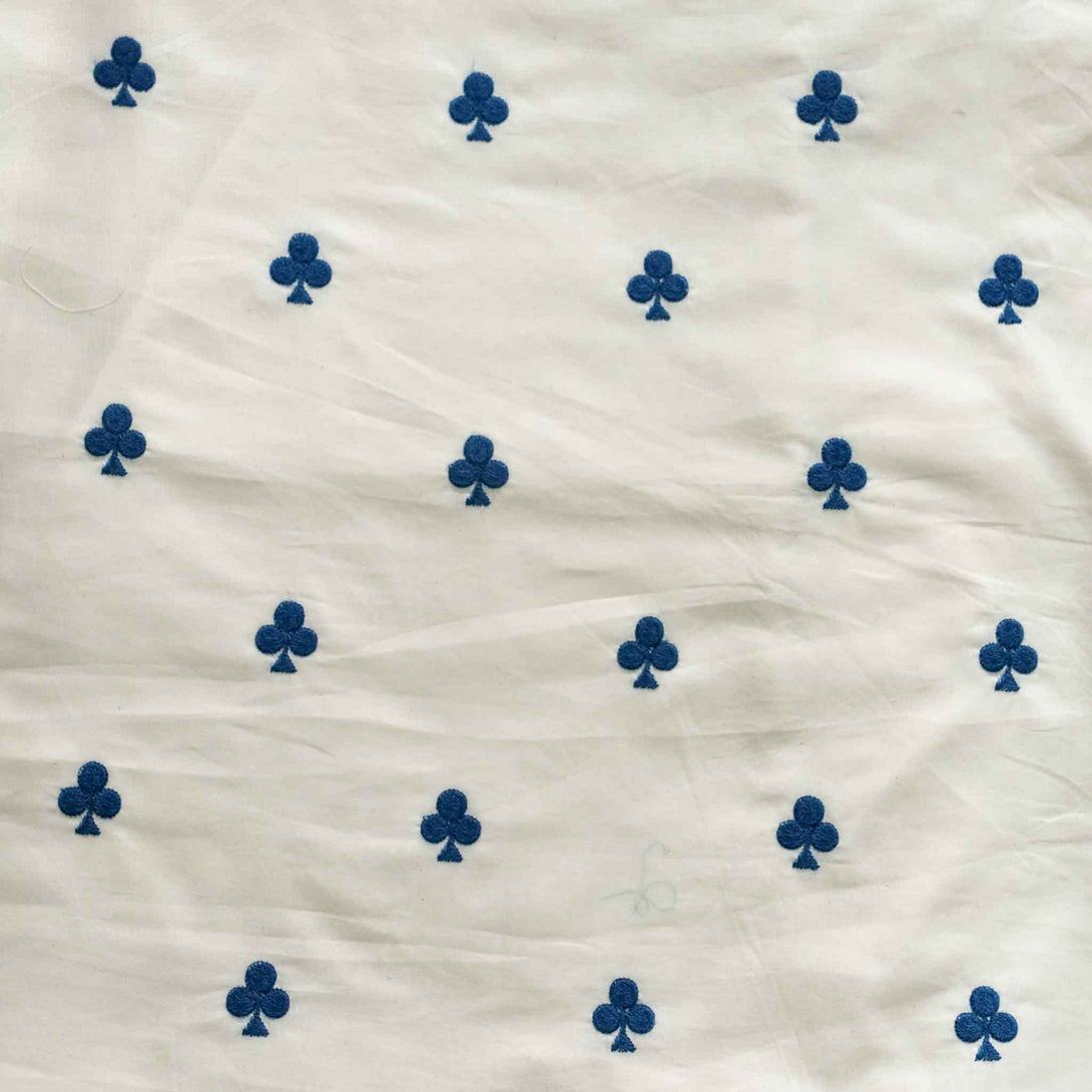 PRE-CUT 2.30 METER Pure Cotton Cream With Blue Clubs Embroidery Fabric With A Border