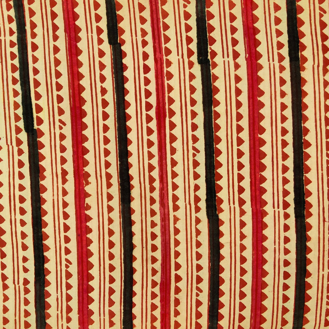 Pre-cut 2.30 meter Pure Cotton Dabu Cream With Rust And Black Tribal Stripes