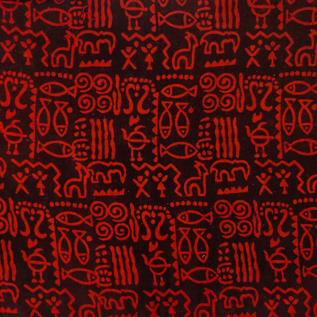 Pre-cut 2.5 meter Pure Cotton Ajrak Black With Madder Tribes Hand Block Print Fabric