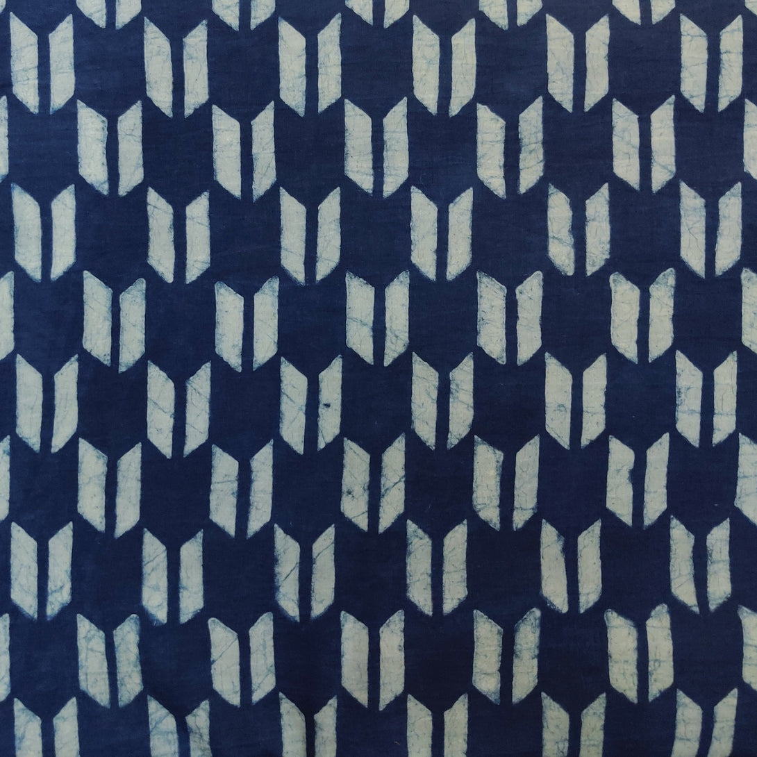 Pre-Cut 2 Meter Pure Coton Special Akola Indigo With Double Arrowhead Motif Hand Block Print Fabric