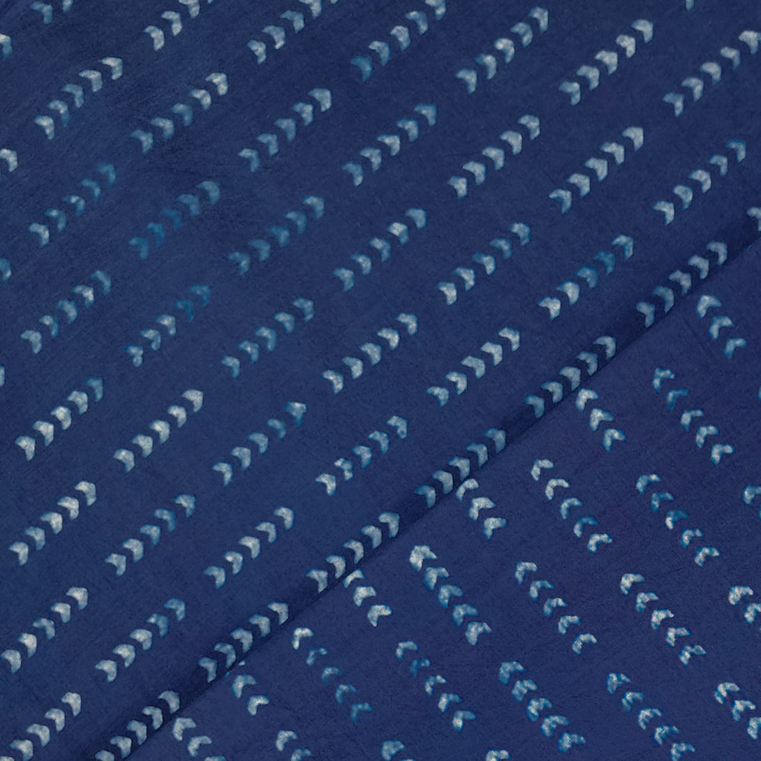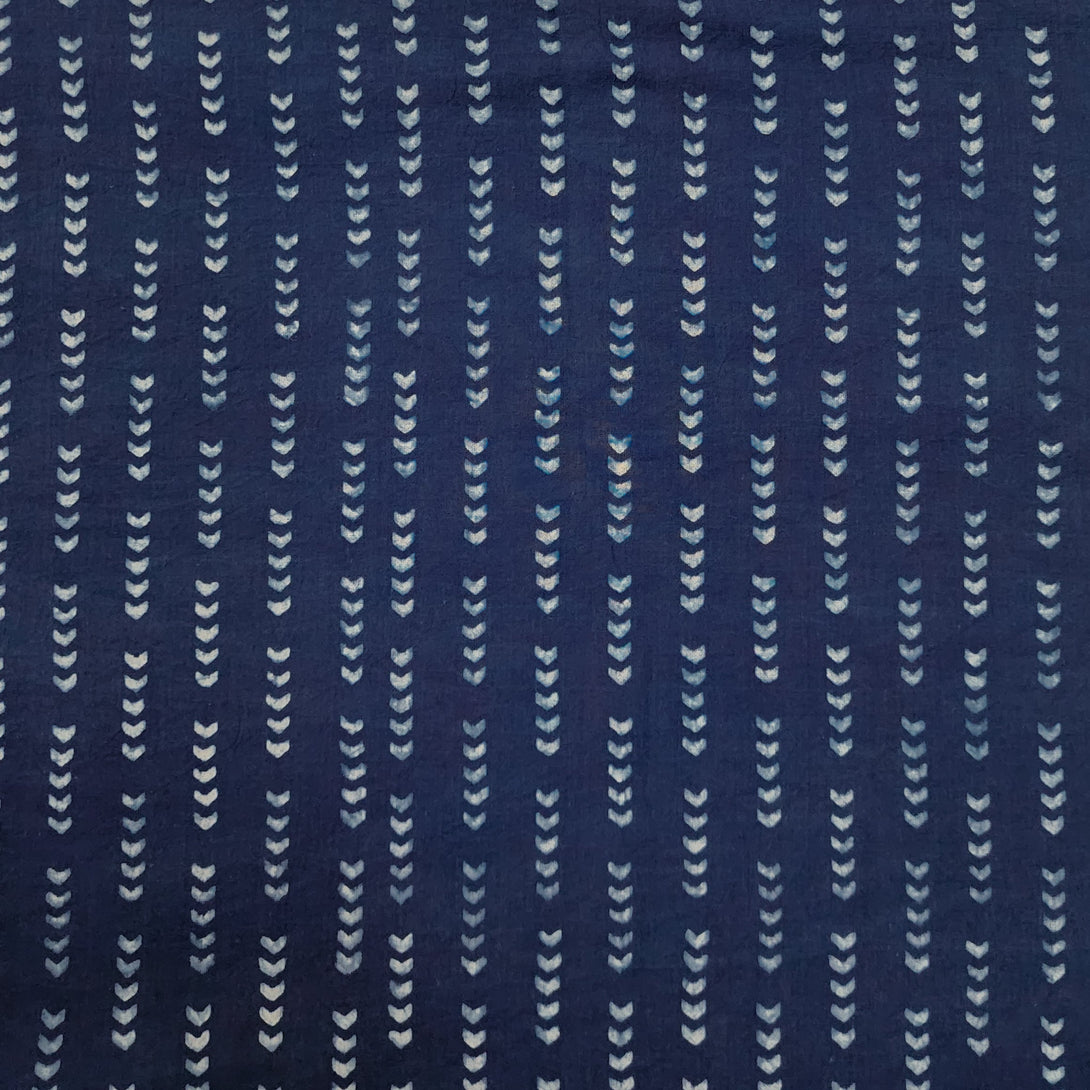 ( Pre-Cut 2 Meter ) Pure Cotton Akola Indigo Smal Arrow Hand Block Print Fabric