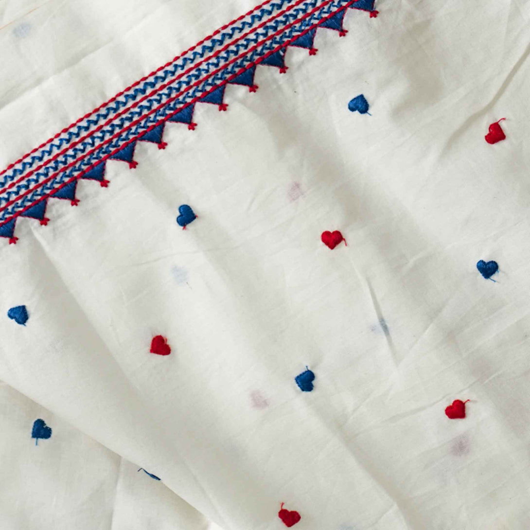 Pre-cut 2 meter Pure Cotton Cream With Red And Blue Hearts Embroidered Fabric With A Border