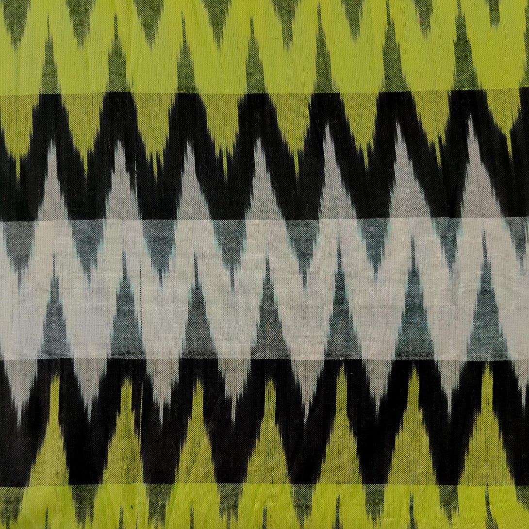 Pre-cut ( 2 meter )Pure Cotton Double Ikkat With Black Green Zig Zag Woven Fabric
