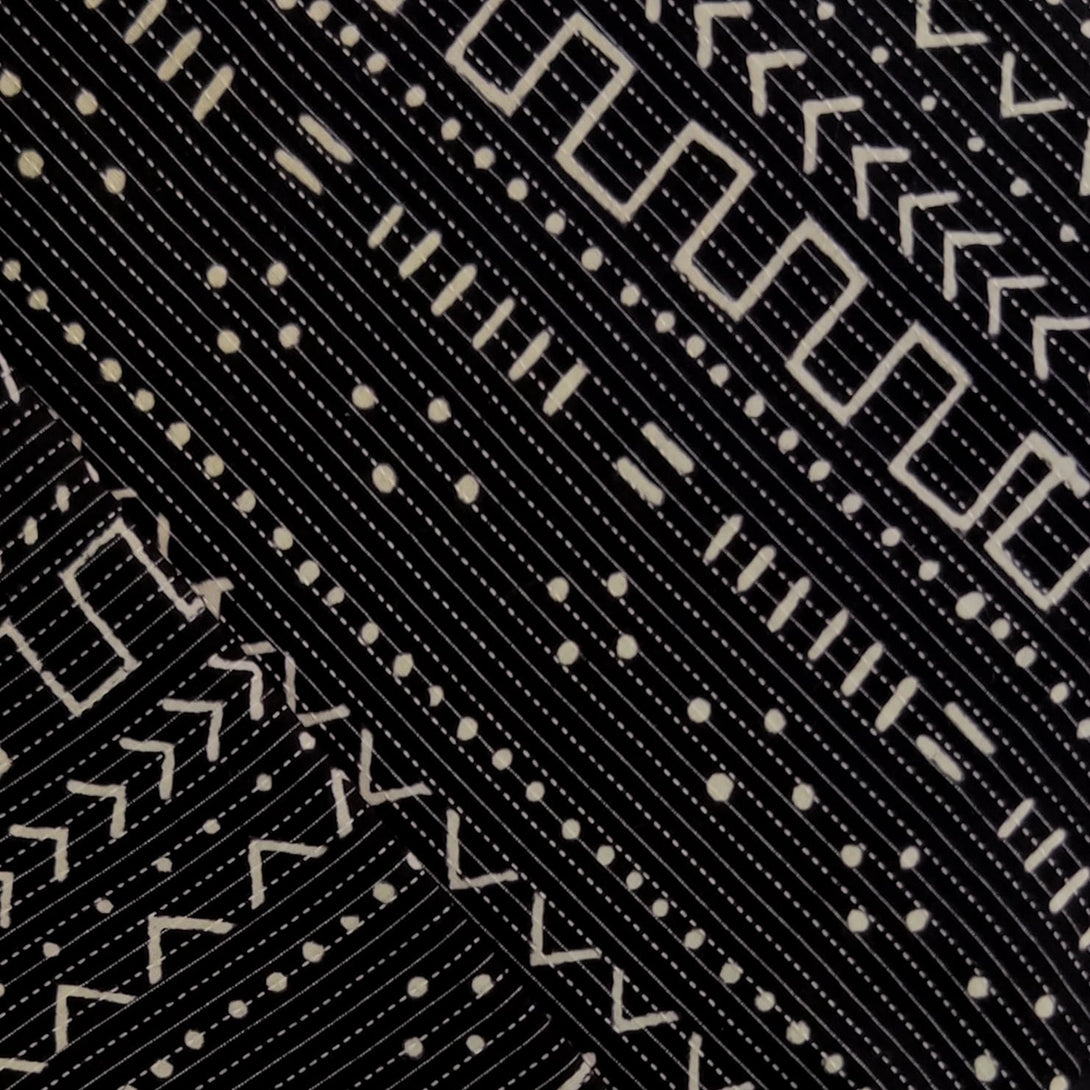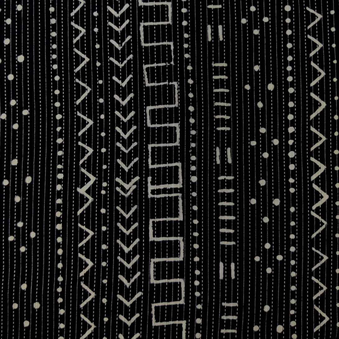 Pre-cut ( 2 Meter )Pure Cotton Kaatha Black With Multi Geometry Stripes Hand Block Print Fabric
