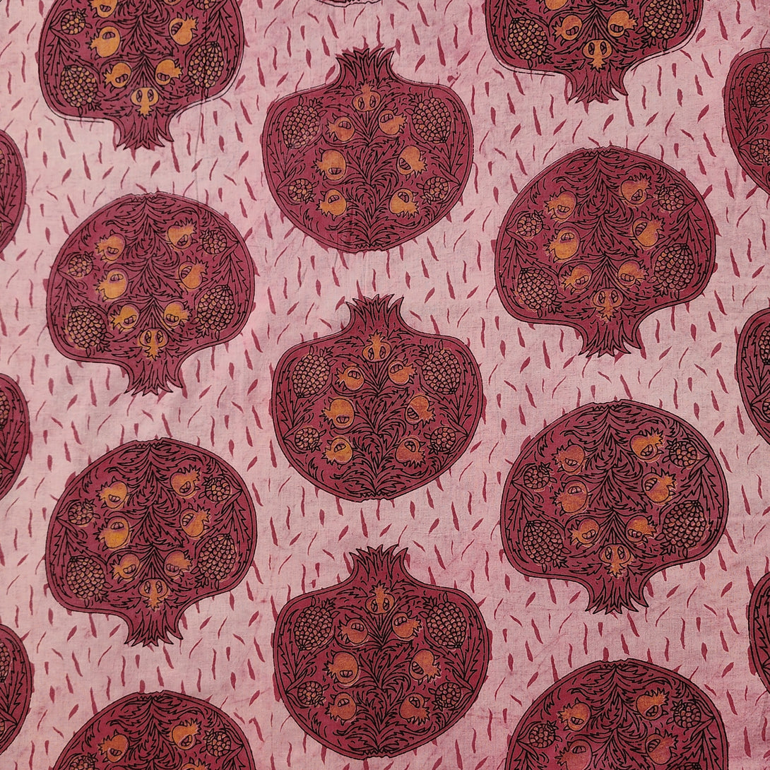 (PRE-CUT 2 METER) Pure Cotton Vanaspati Punch Pink With Pomegranate Hand Block Print Fabric