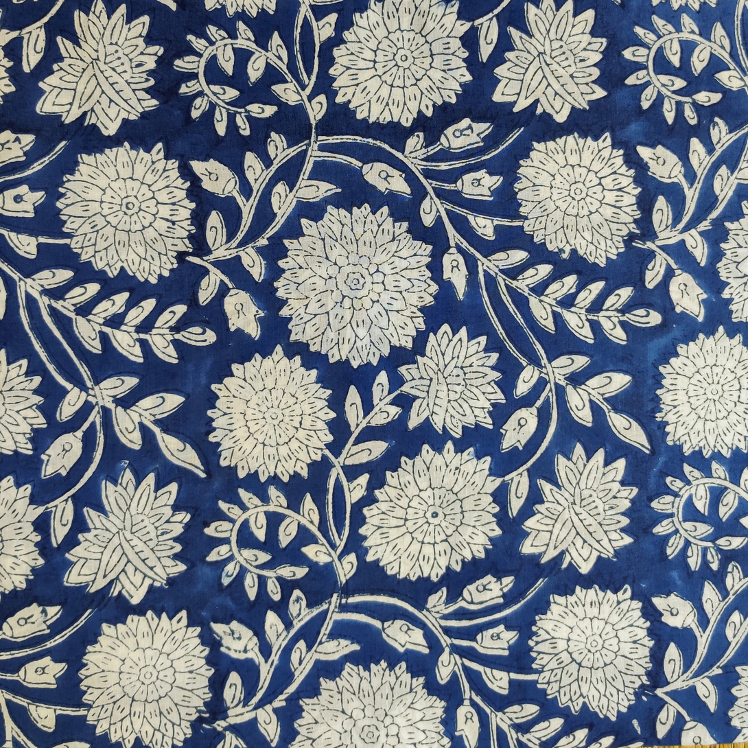 Pre-cut (2 meter)Pure Cotton Jaipuri Blue With Marigold Jaal Hand Block Print Fabric