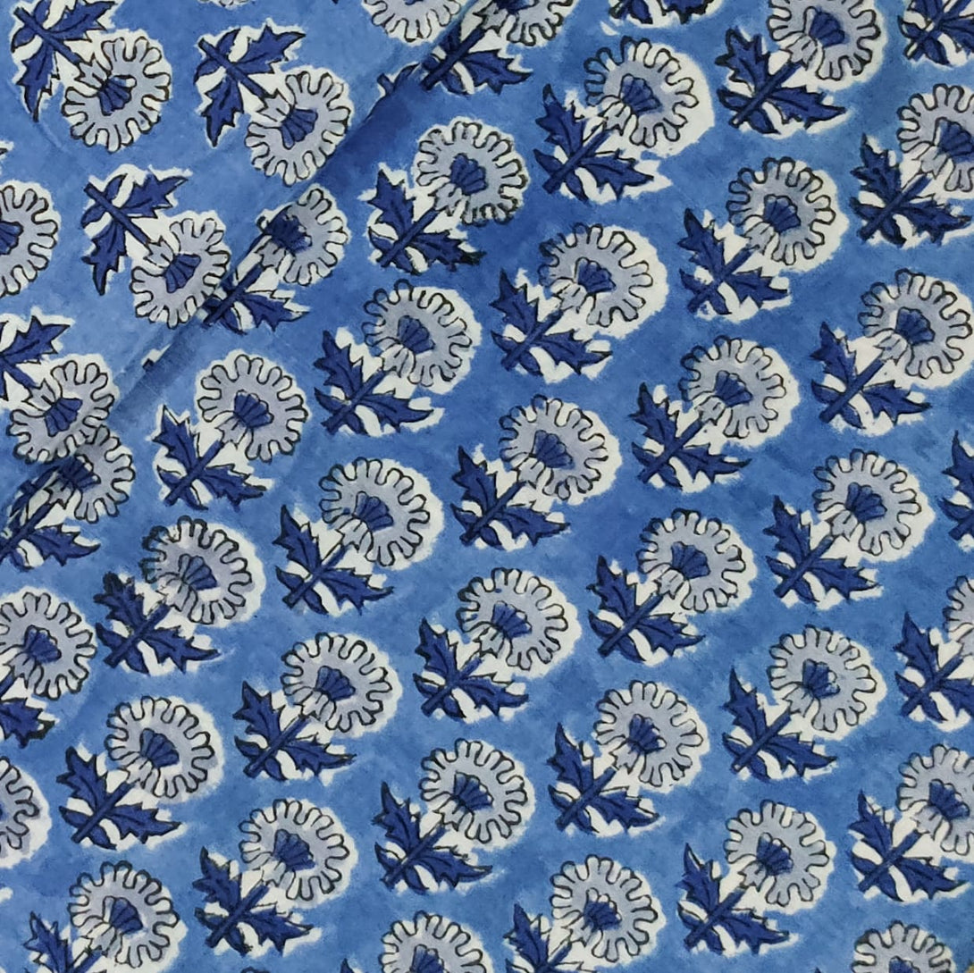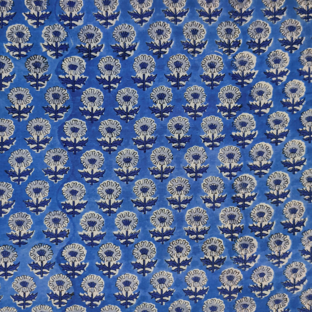 Pre-cut (2 meter)Pure Cotton Jaipuri Blue With Tiny Blue Plant Hand Block Print Fabric