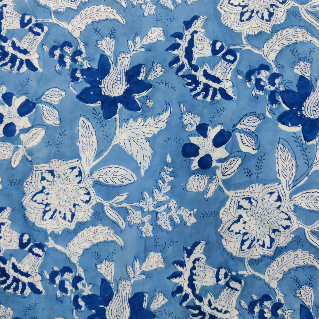 Pre-Cut 2 Meters Pure Cotton Jaipuri Shades Of Blue Jaal Hand Block Print Fabric