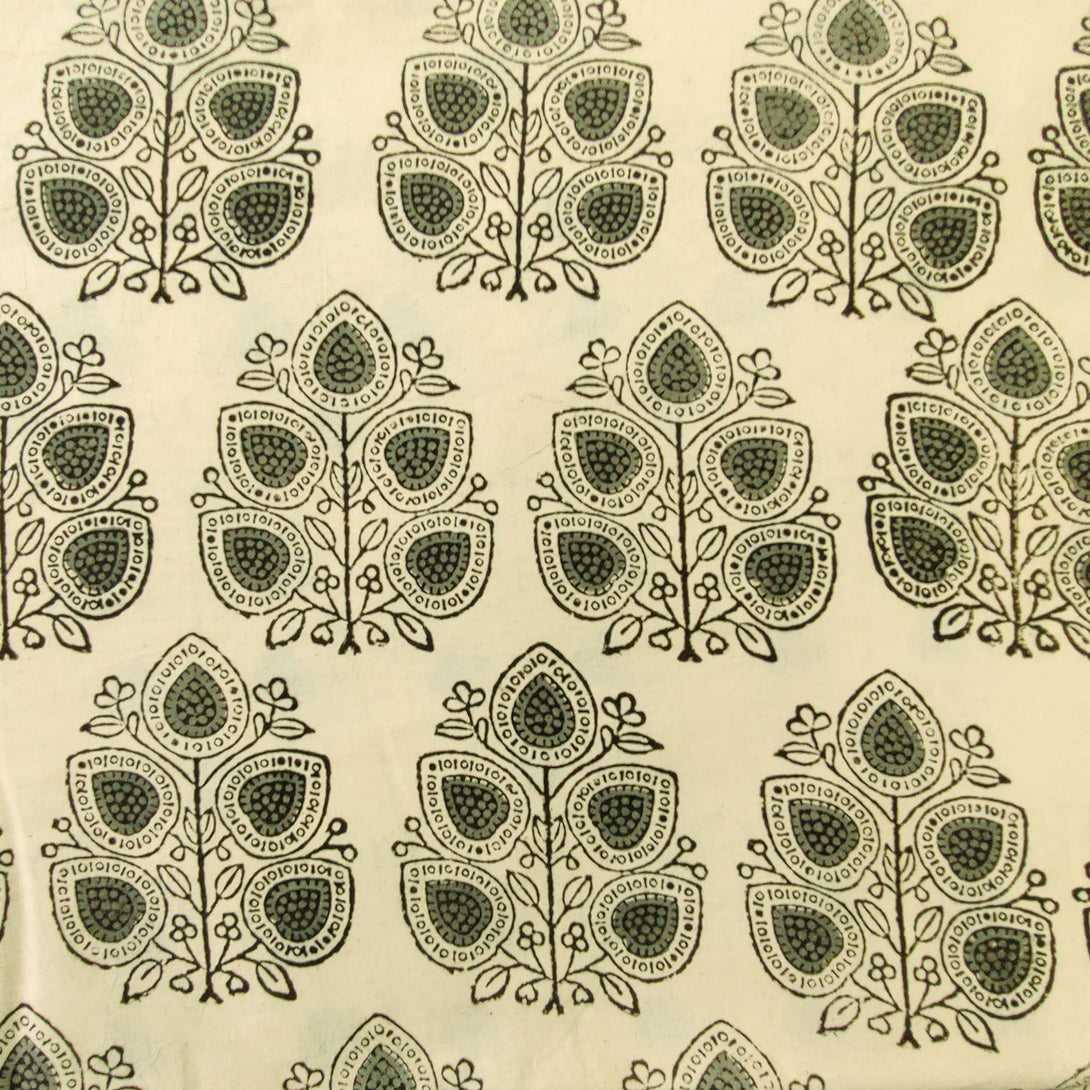 Pre-cut Pure Cotton Bagru Cream With Twig Of Leaves Hand Block Print Fabric( 2.45 meter)