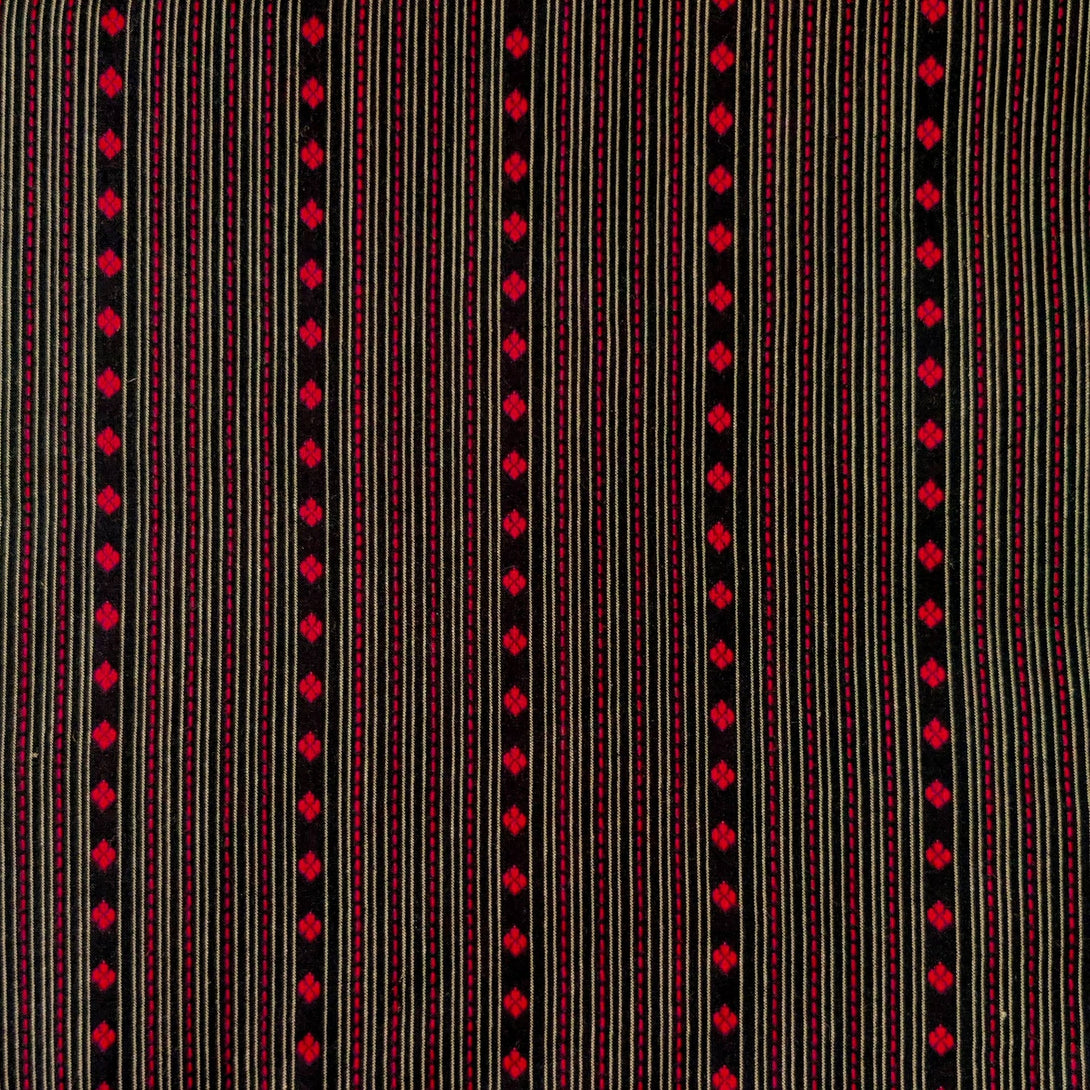Pre-cut Pure Cotton Handloom Black With Red Thread And Flower Stripes Woven Fabric( 1.90 meter)