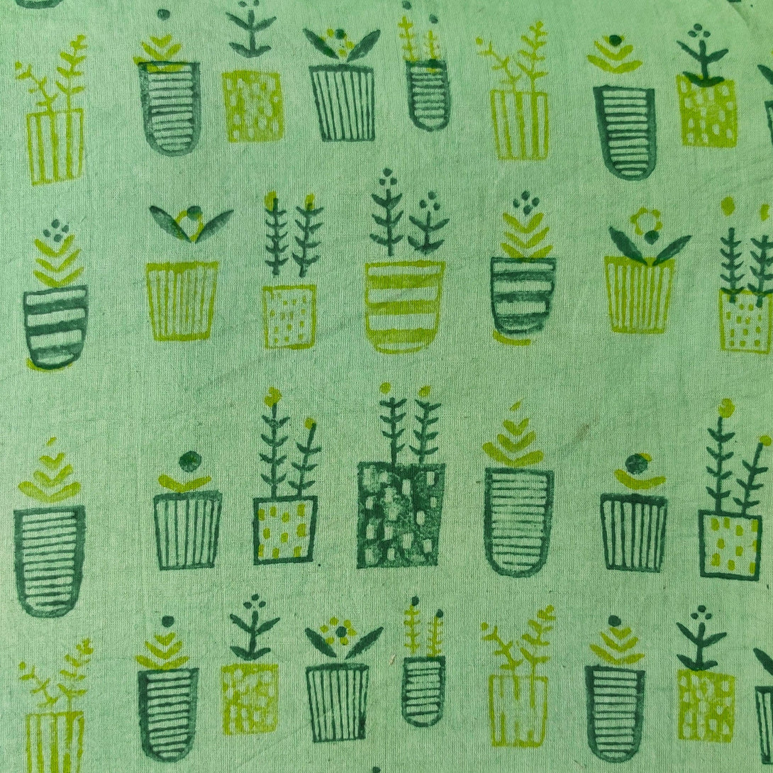 pre-cut Pure Cotton Organic Dyed House Of Plants Hand Block Print Fabric( 1.5 meter)