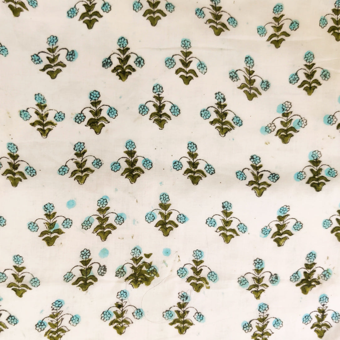 (PRE-CUT 1 METER) Pure Cotton Jaipuri White With Tiny Motifs Hand Block Print Fabric