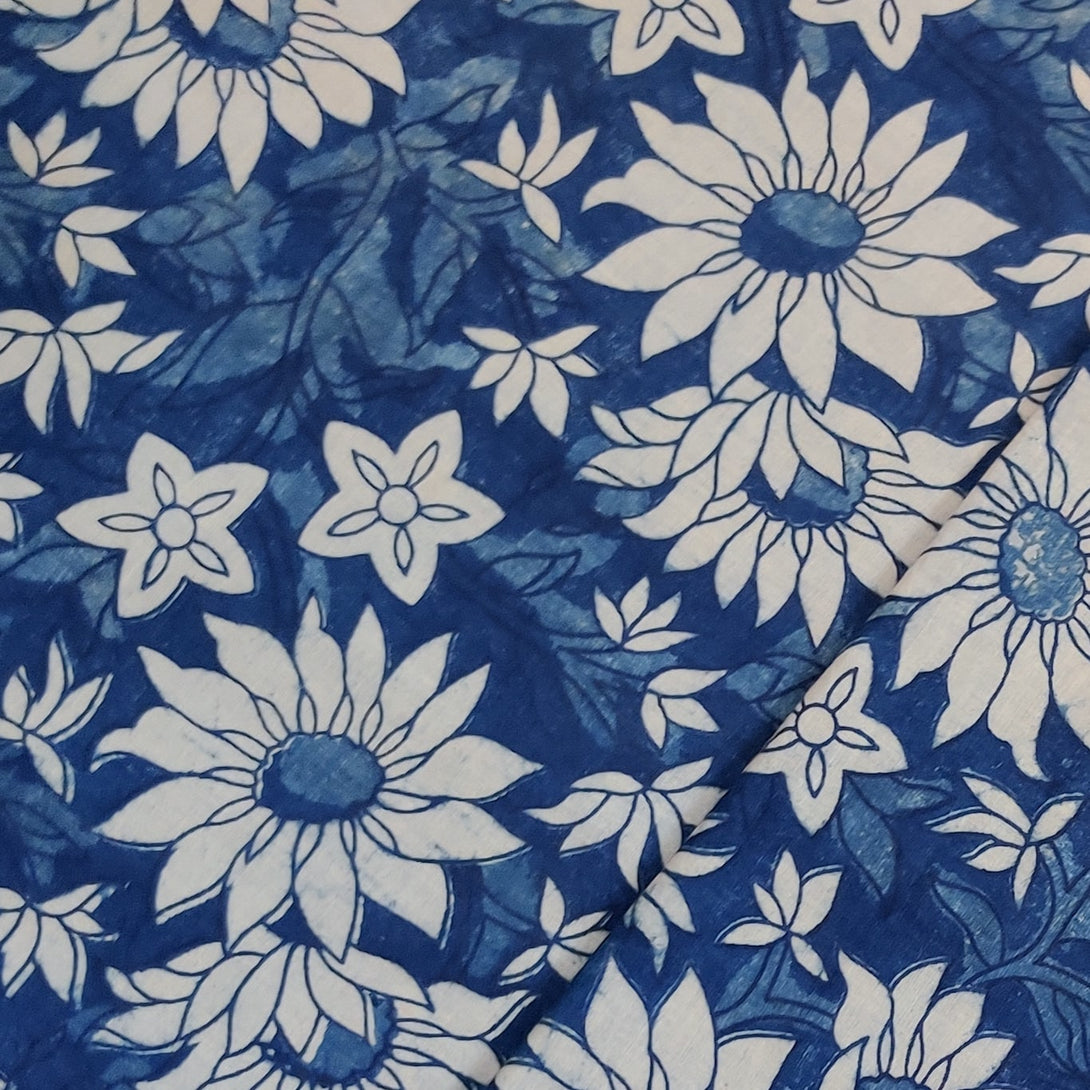 Precut ( 1.30 Meter ) Pure Cotton Indigo Sunflower Hand Block Print Fabric