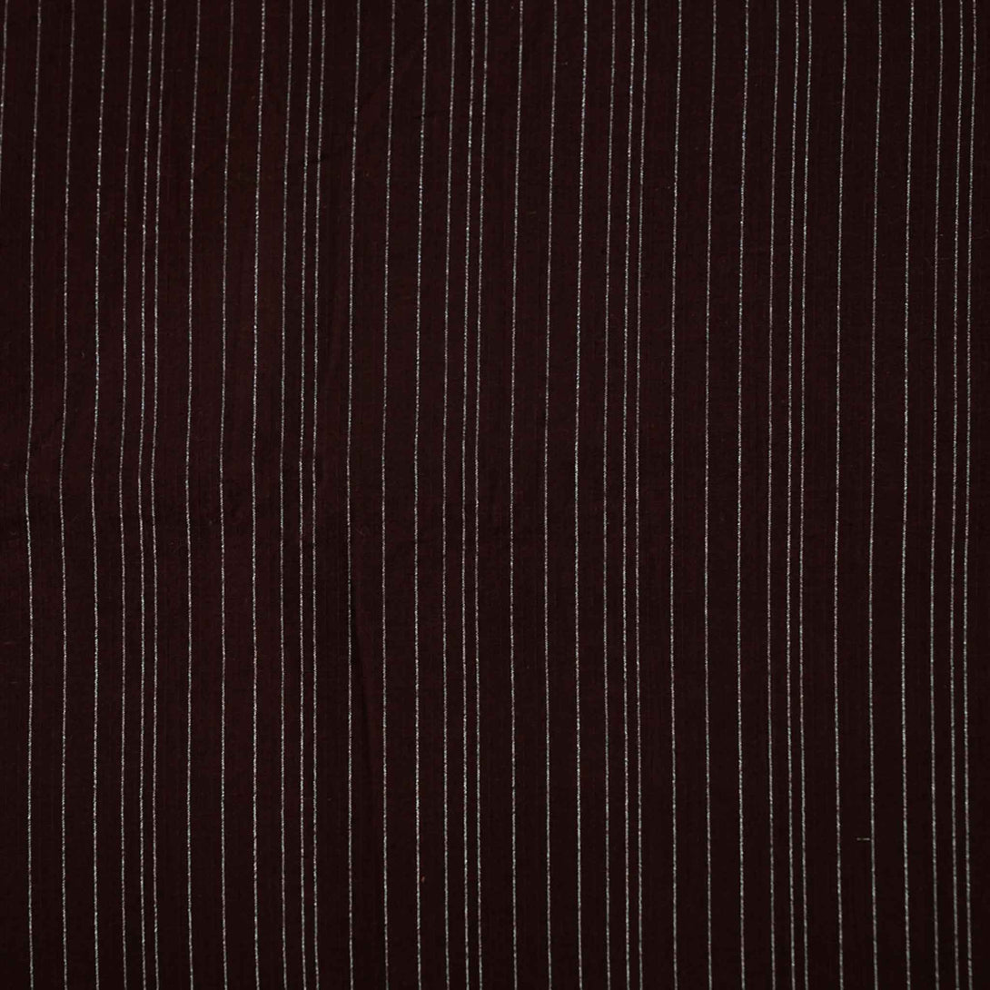 Precut (1.5 meter) Pure Cotton South Handloom Brown With Silver Zari Stripes Woven Fabric