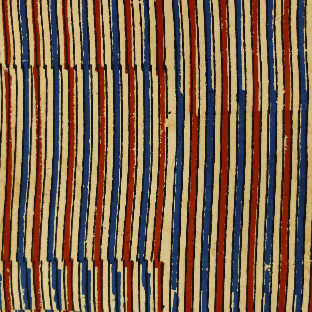 Precut 1.70 Meter Pure Cotton Ajrak With Cream Blue And Rust Stripes Hand Block Print Fabric
