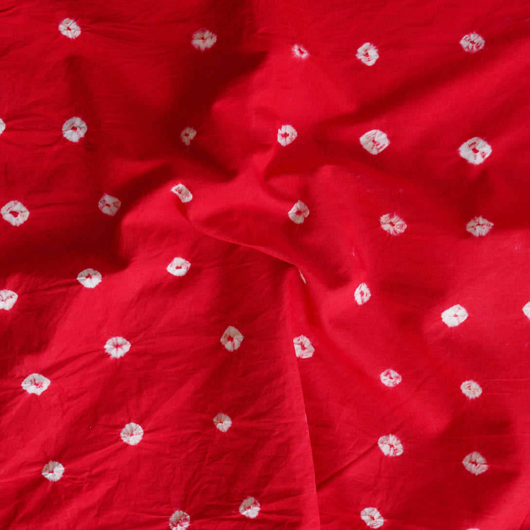 ( Precut 2.40 Meter ) Pure Cotton Bandani Red With White tie And Dye Fabric