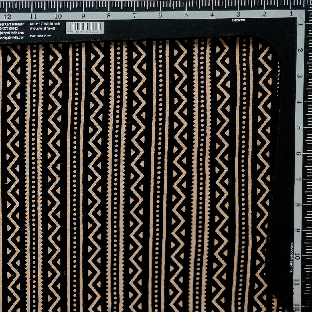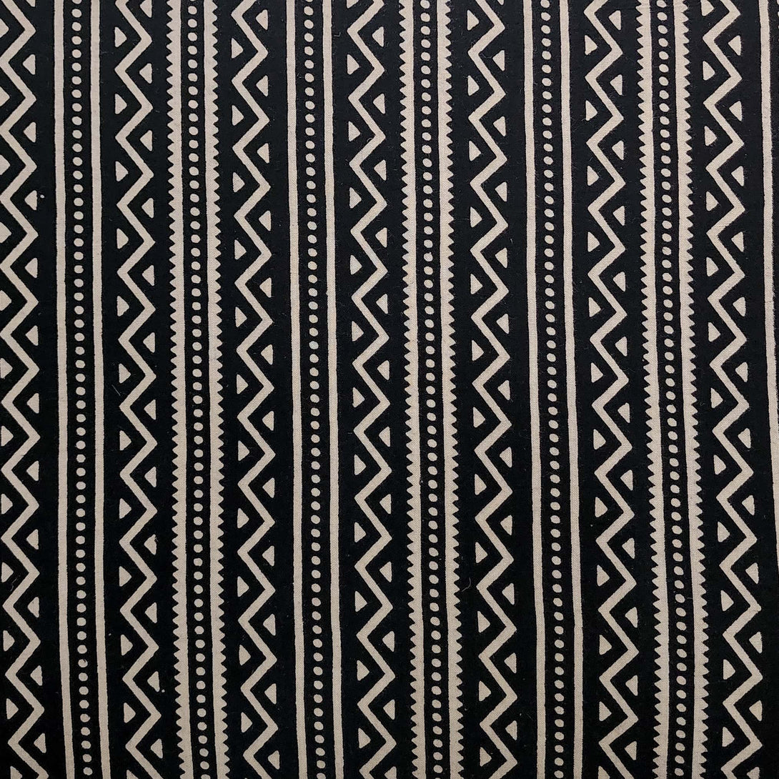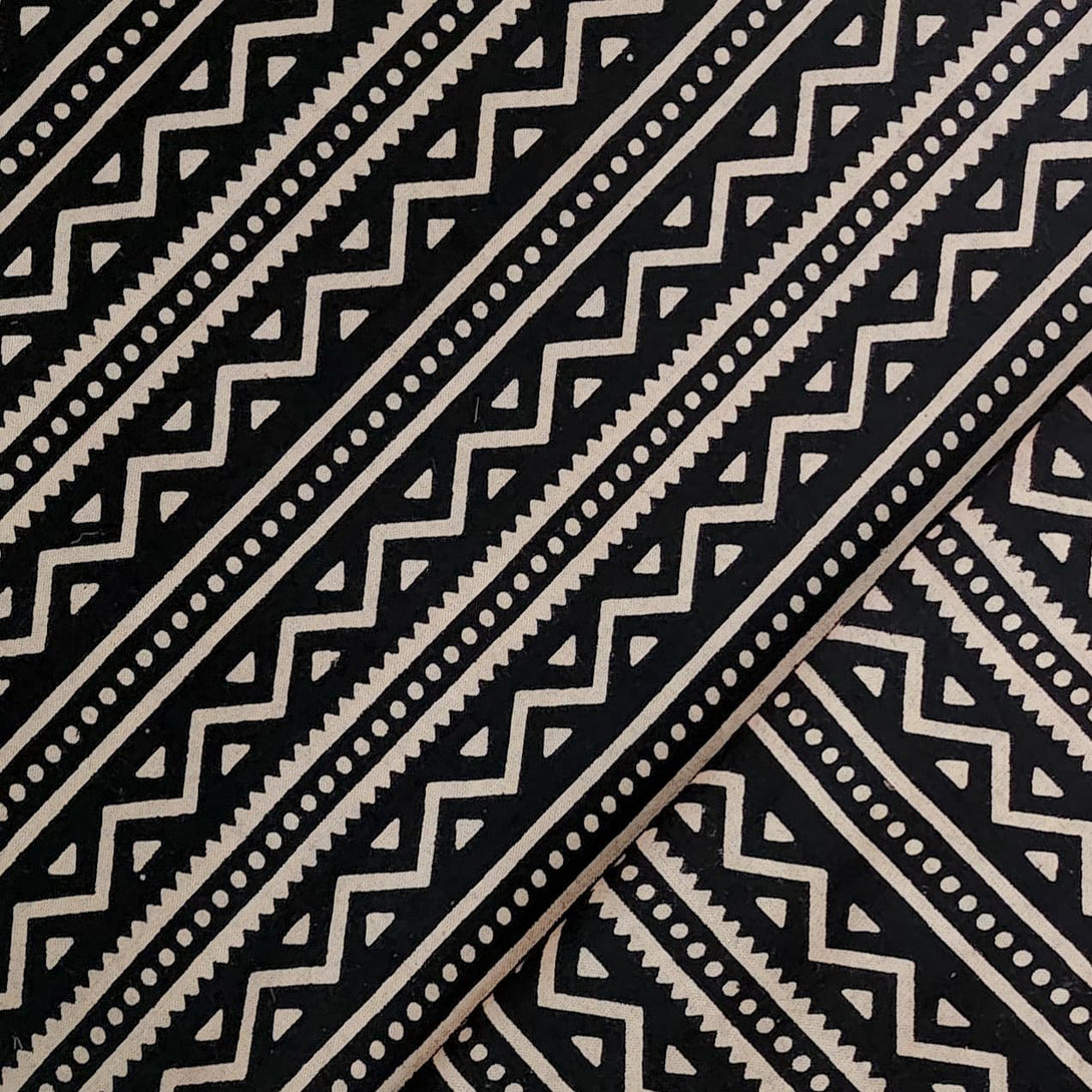Pure Cotton Ajrak Black Stripes And Zig-Zag Hand Block Print Fabric