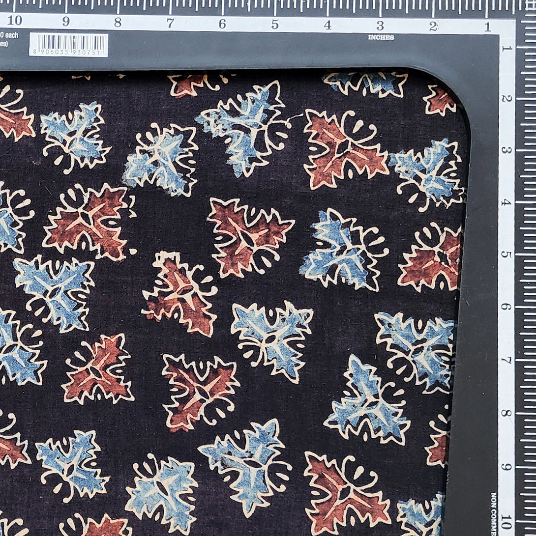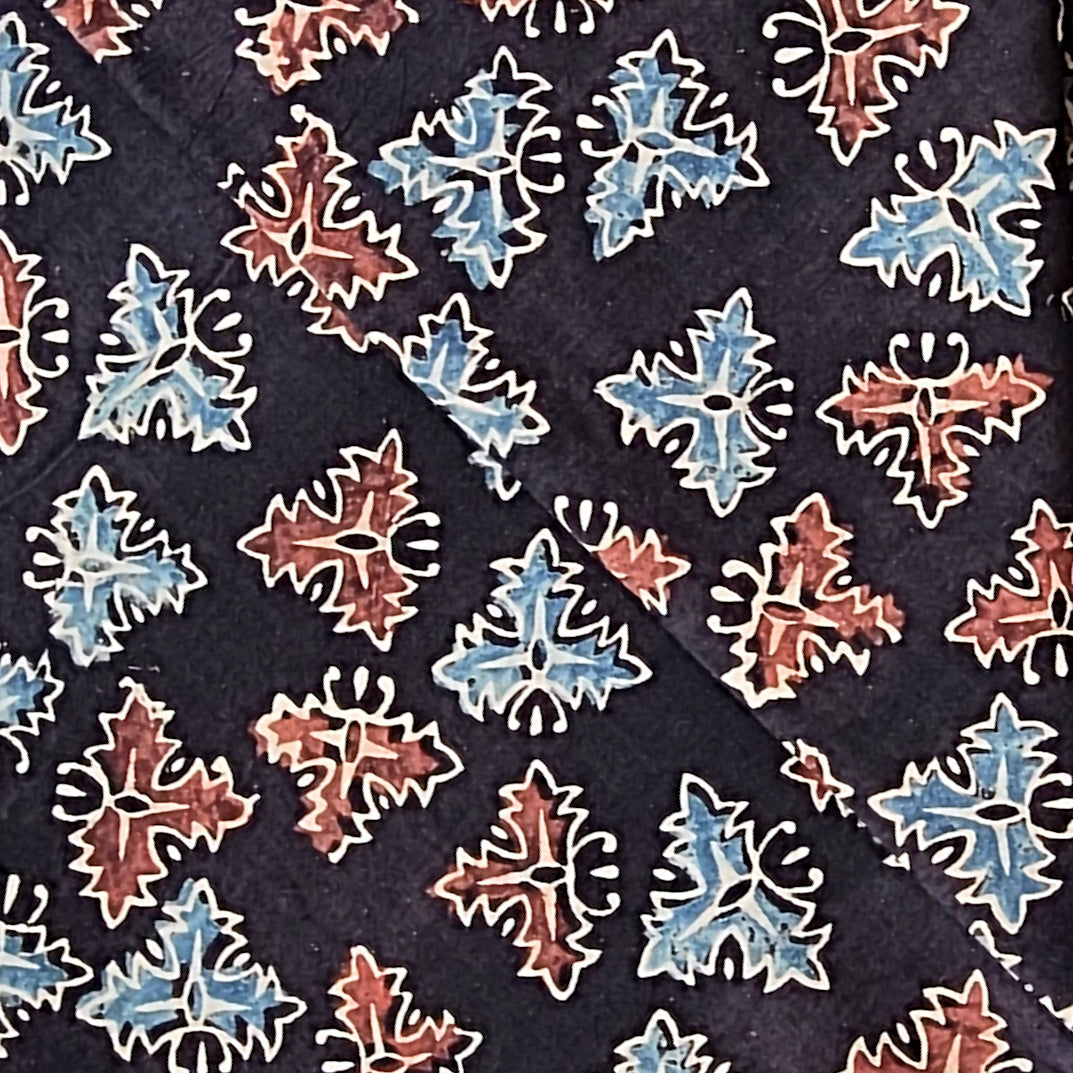 Pure Cotton Ajrak Black With Blue And Red Motif Hand Block Print Fabric