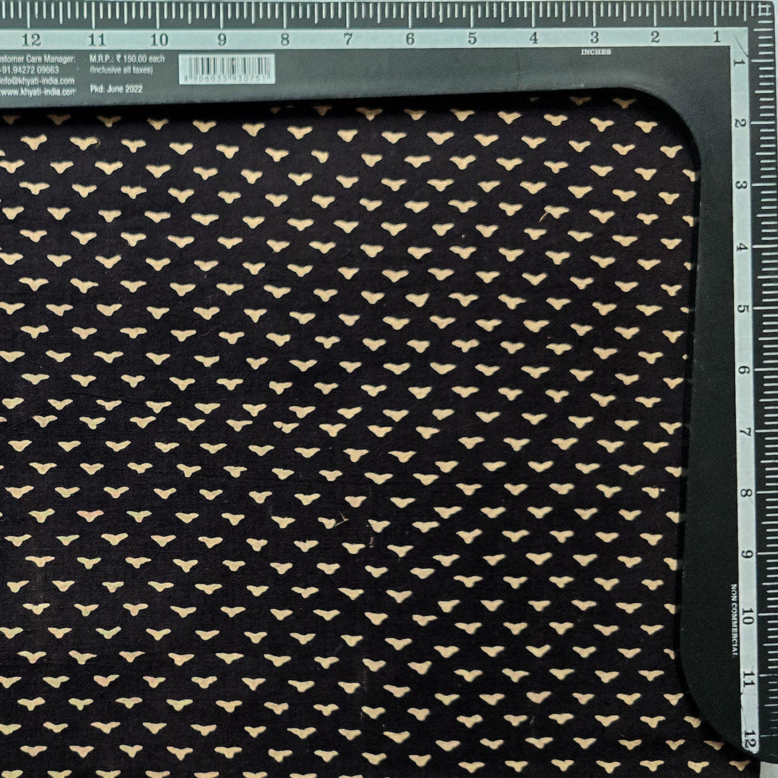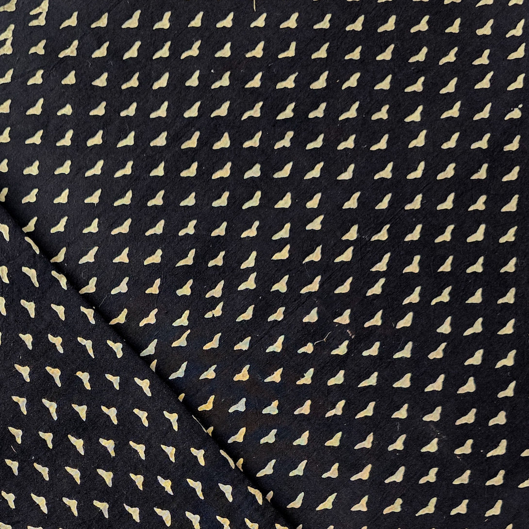 Pure Cotton Ajrak Black With Cream Tiny Arrow Motifs Hand Block Print Fabric